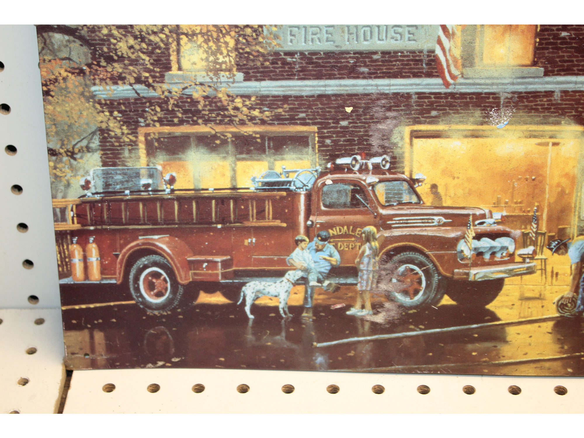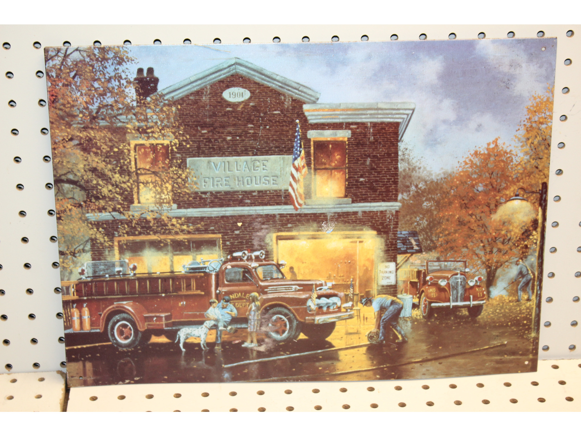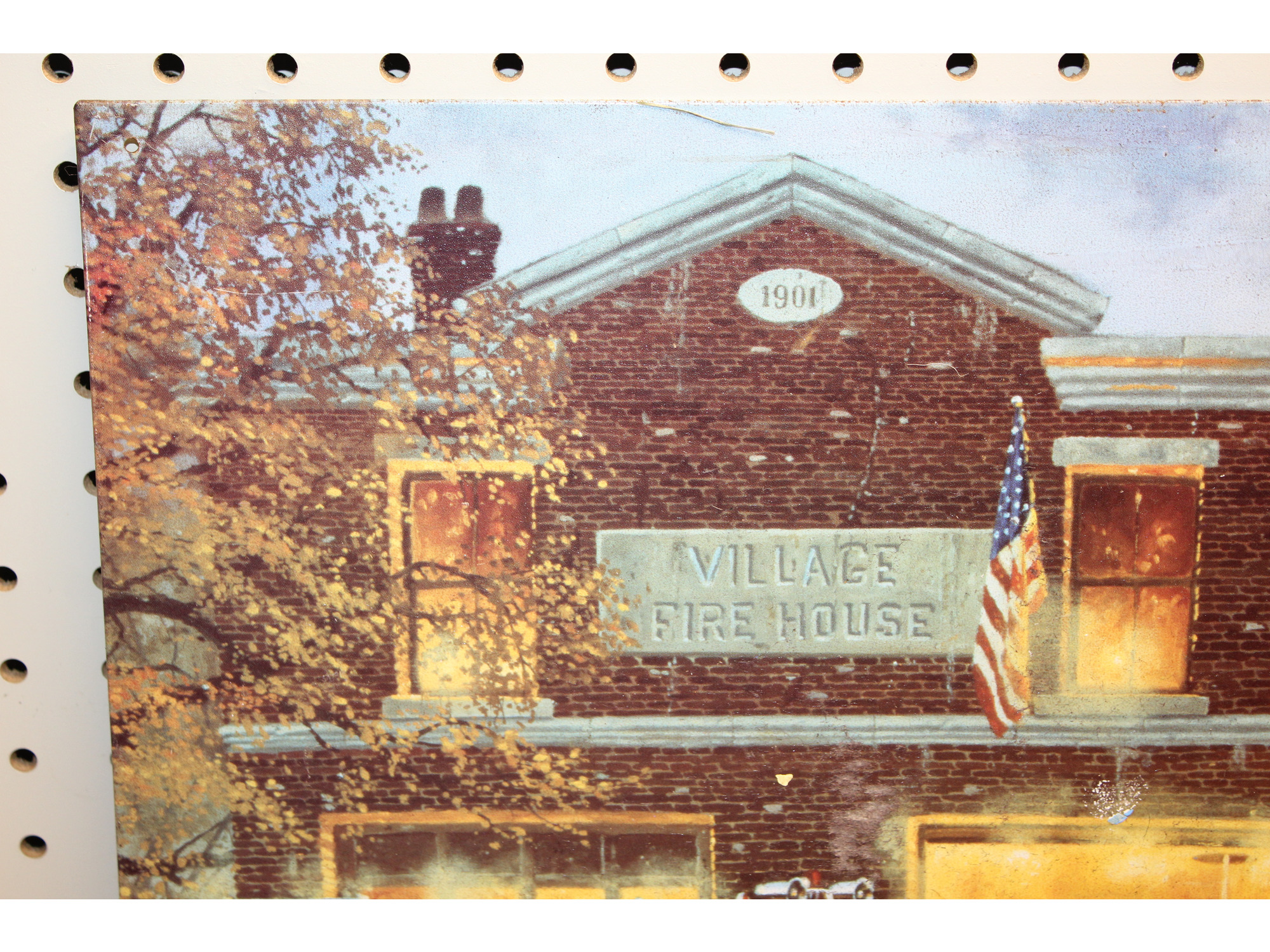 17.5 x 12.5 picture on tin VILLAGE FIRE HOUSE