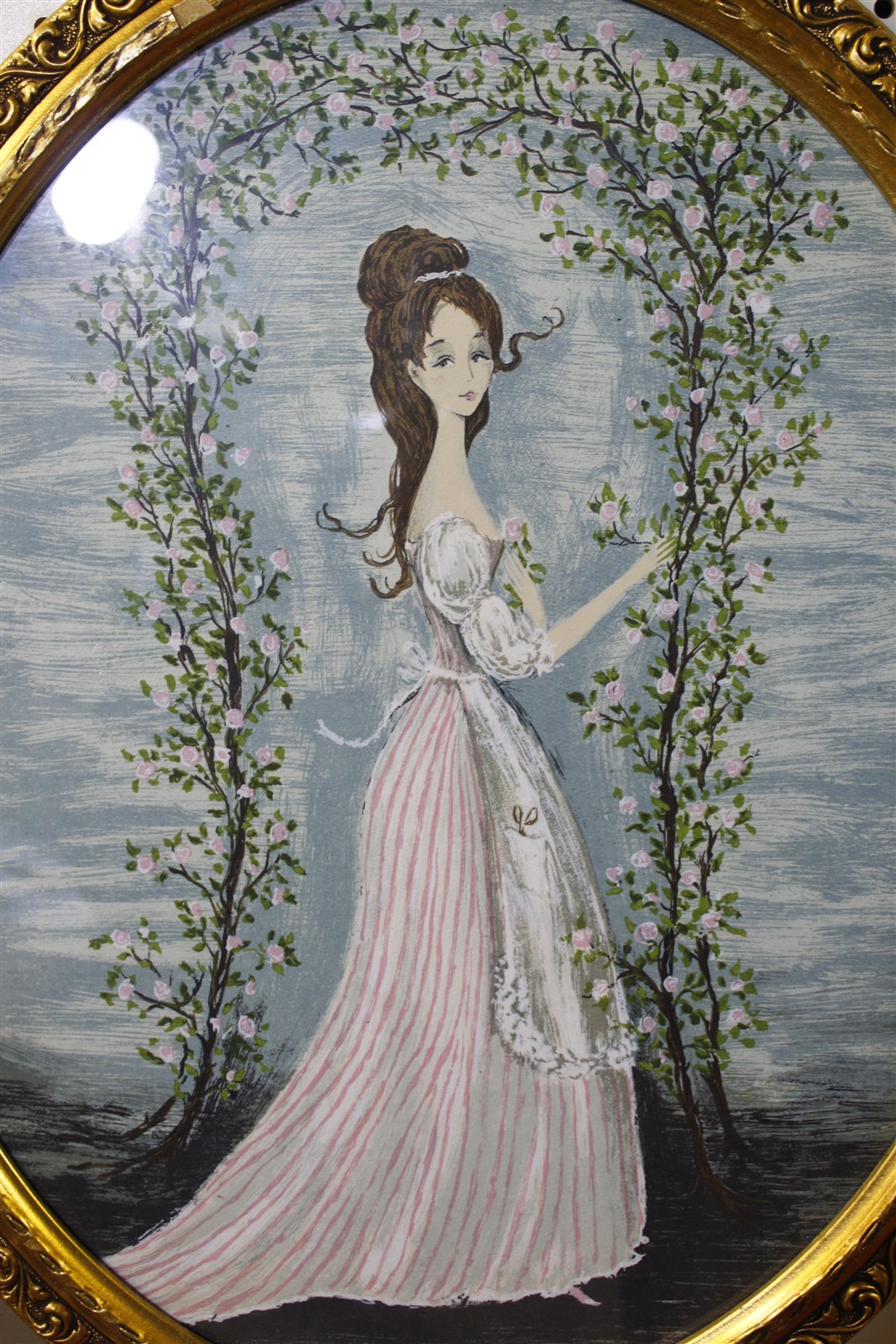 18.5 x 22.25 Stunning Oval Gold Framed Picture The Rose Arbor by Carol Blanchard