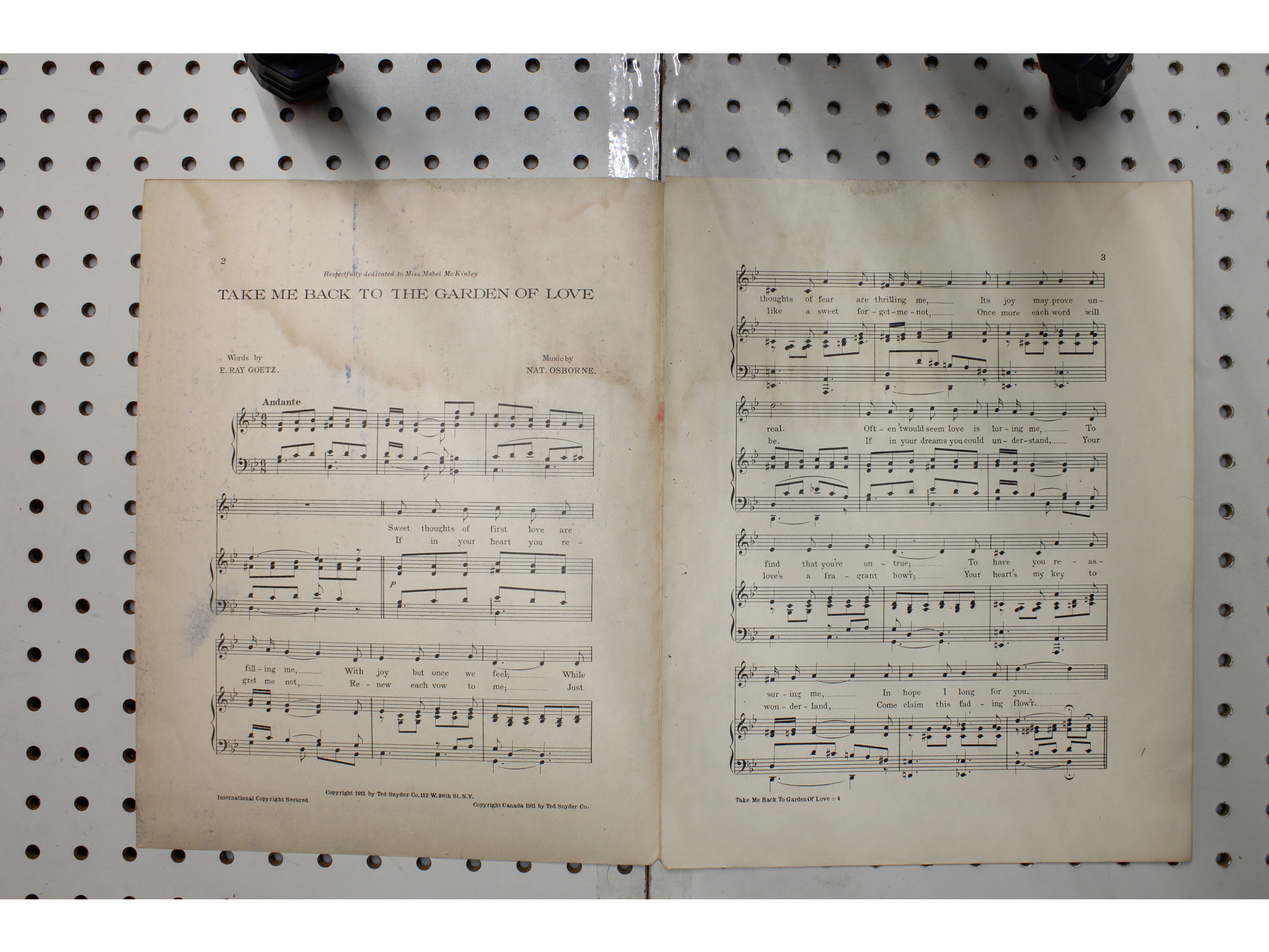 1911 - Take me back to the garden of love - Sheet Music