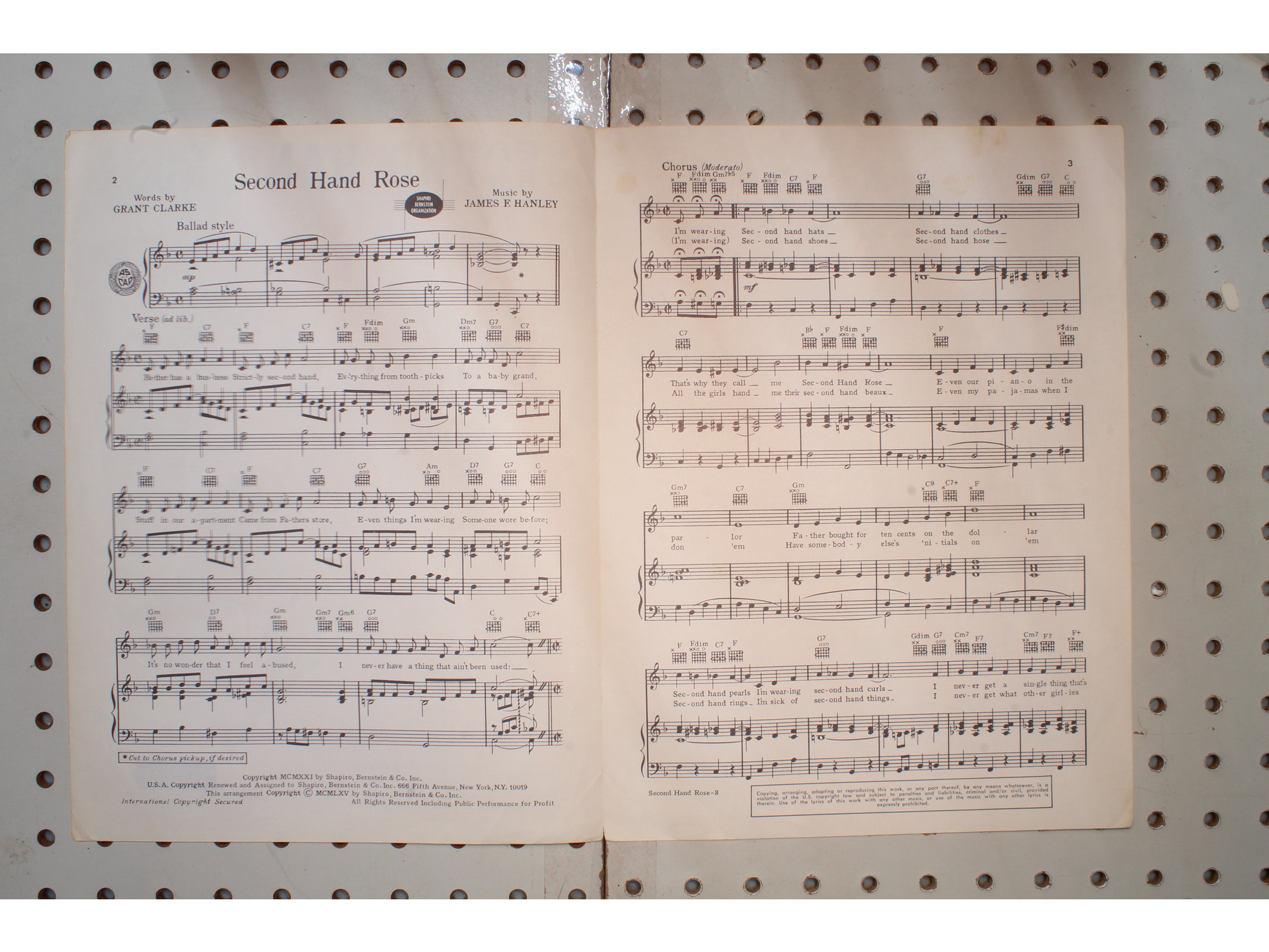 1921 - Second hand rose funny girl - Sheet Music