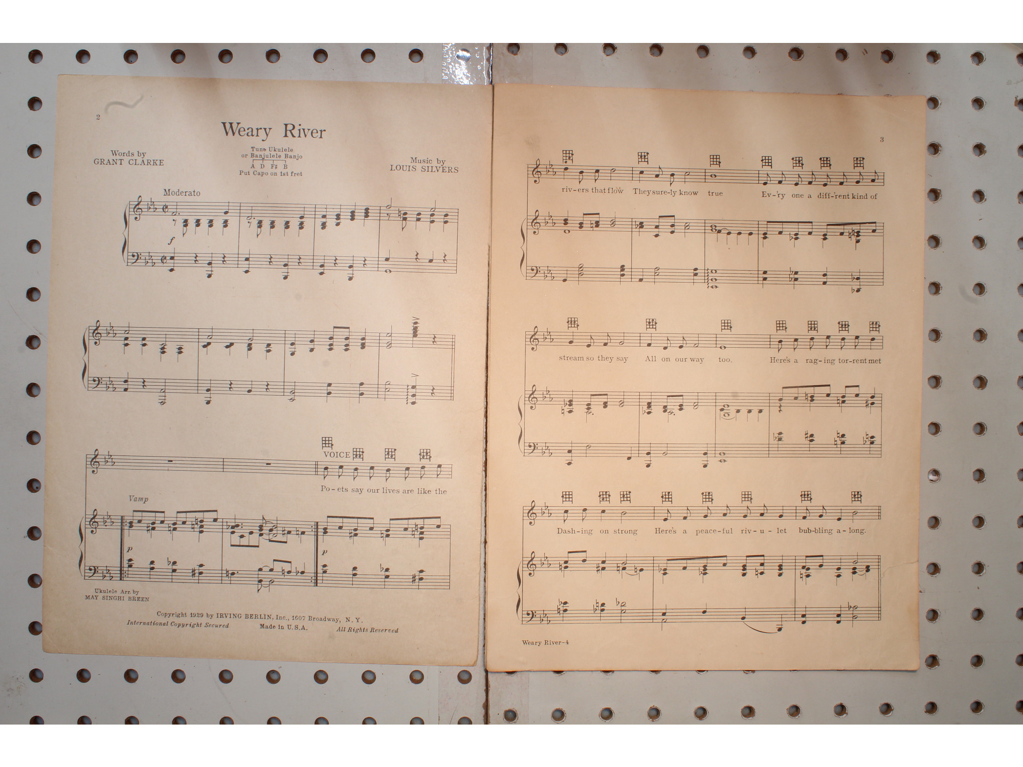 1929 - WEARY RIVER IRVING BERLIN - Sheet Music