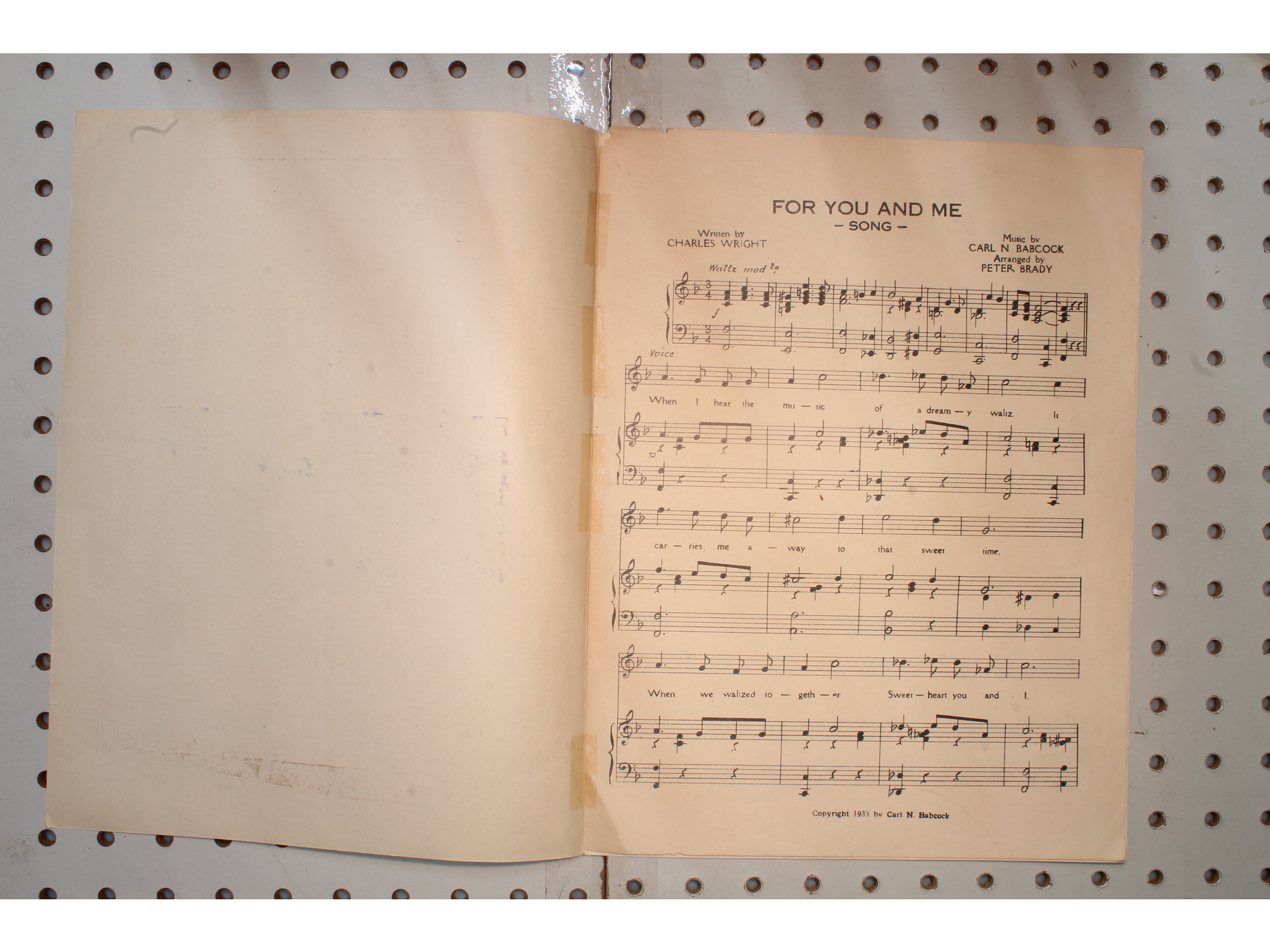 1933 - FOR YOU AND ME BY CHARLES WRIGHT , CARL N. BABCOCK AND PETER BRADY - Shee