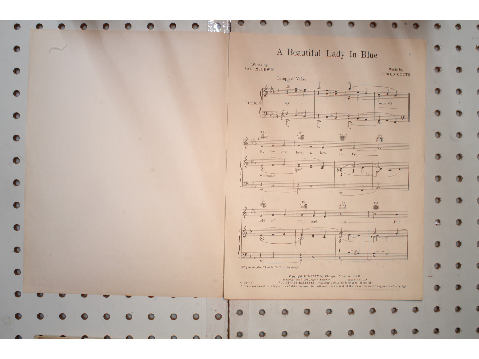 1935 - A beautiful lady in blue - Sheet Music
