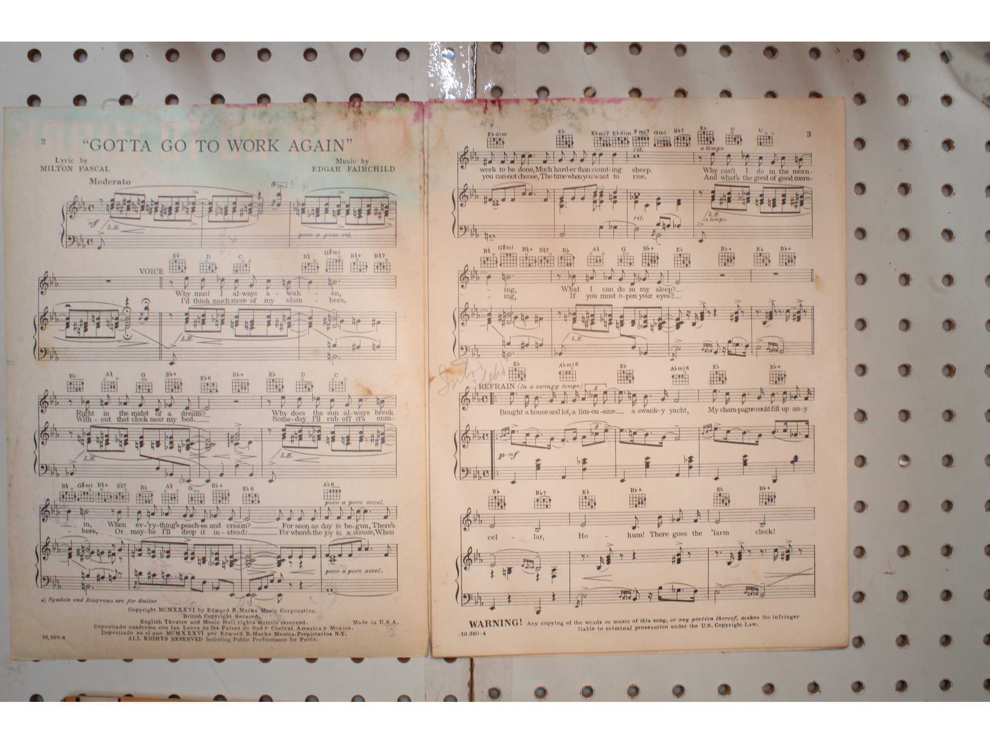 1936 - Gotta go to work again Guy Lombardo - Sheet Music
