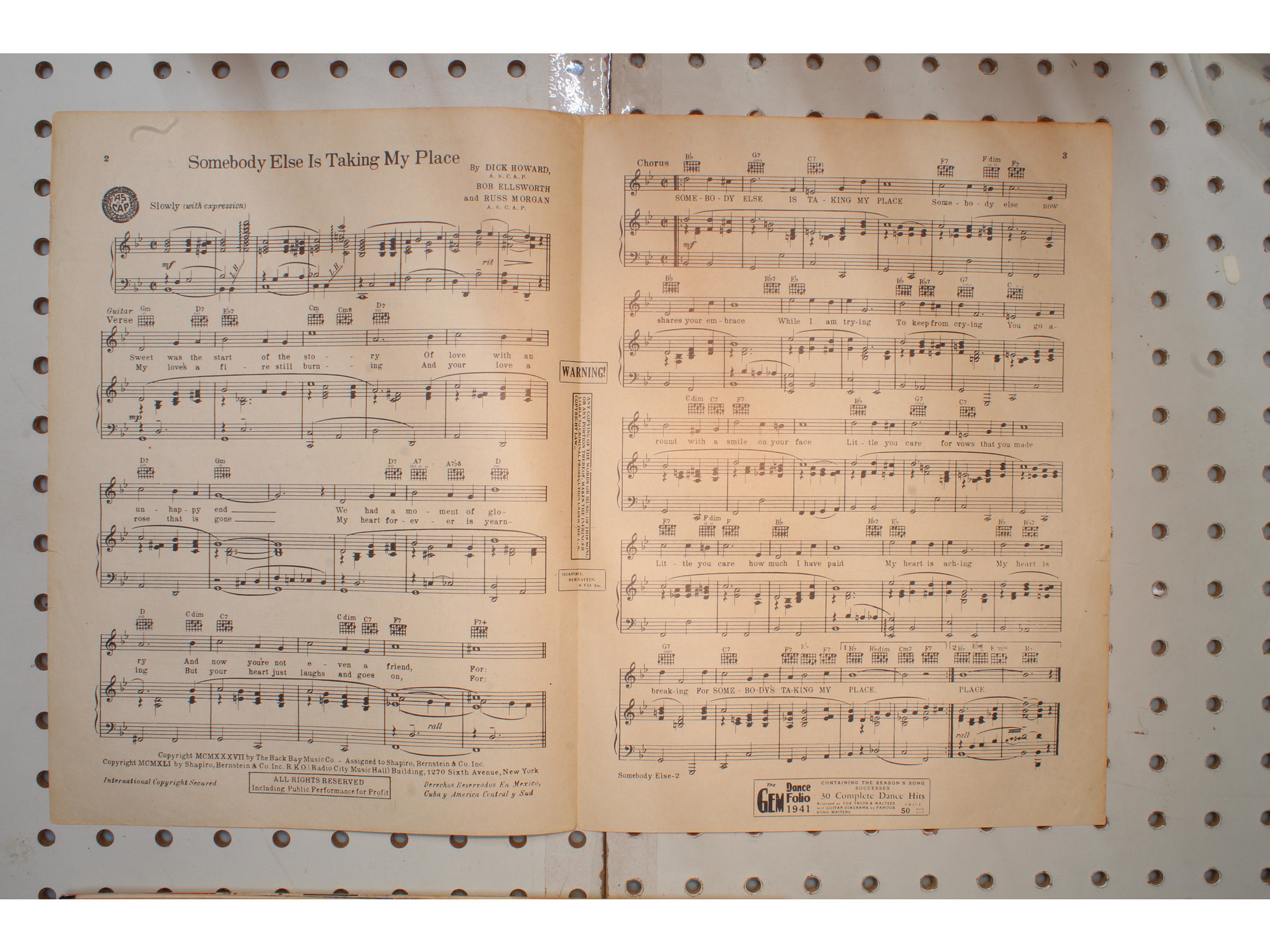 1937 - Somebody else is taking my place semi Kaye - Sheet Music