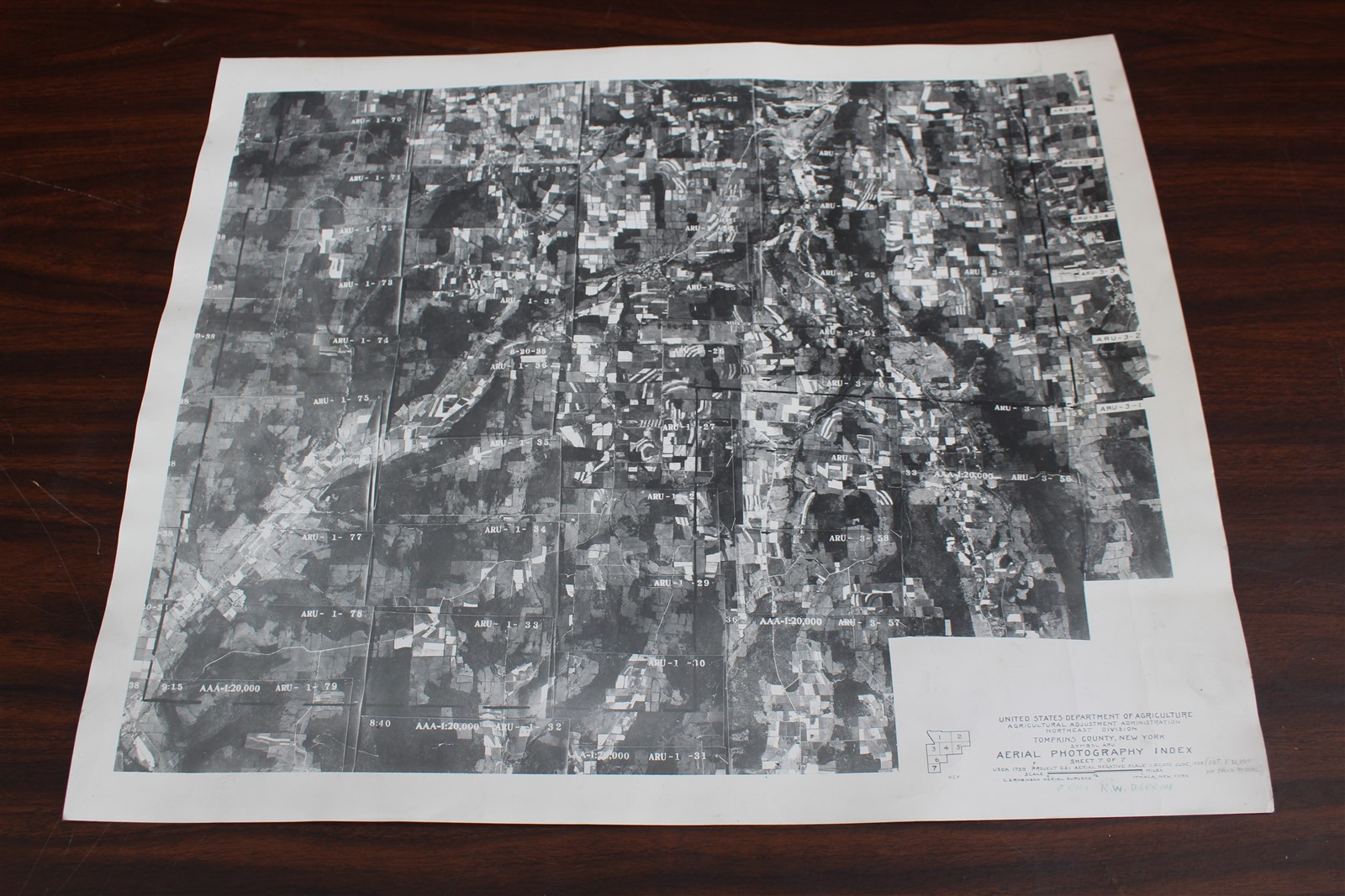 1938 USDA aerial photograph index Tompkins County New York
