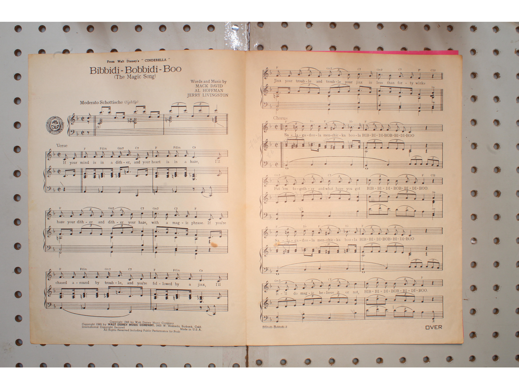 1948 - WALT DISNEYS CINDERELLA BIBBIDI-BOBBIDI-BOO BY MACK DAVID, AL HOFFMAN AN