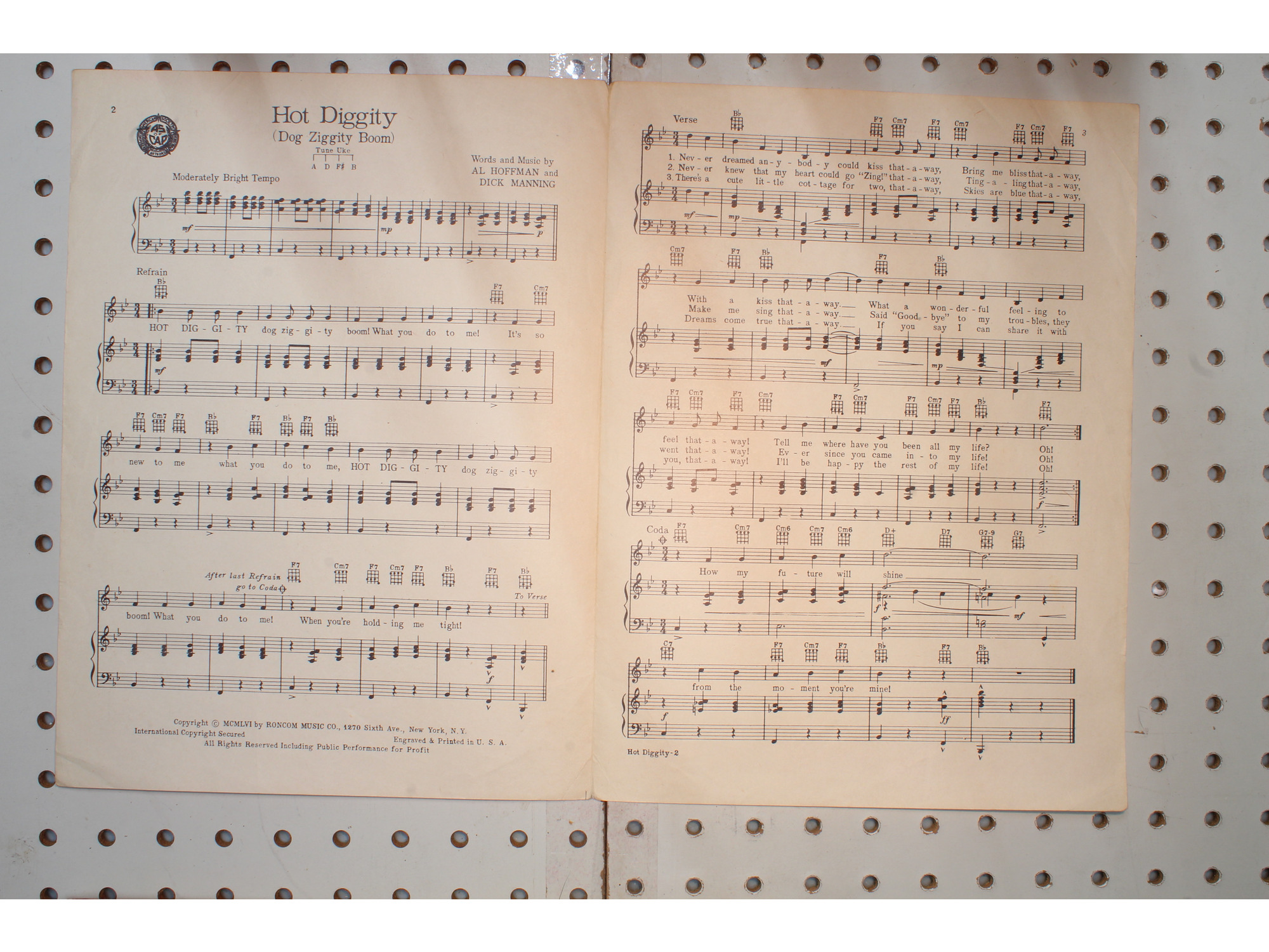 1954 - Hot Diggity dog Ziggity boom - Sheet Music