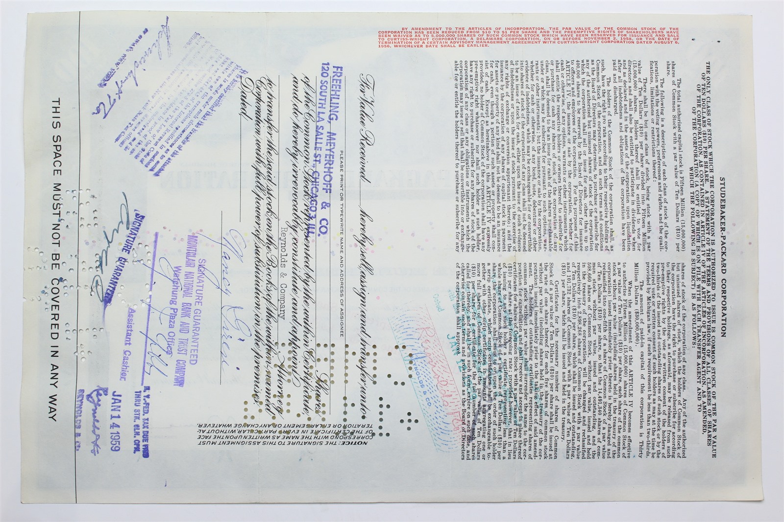 1957 Studebaker-Packard Corporation Stock Certificate - Y100840 - 100 Shares