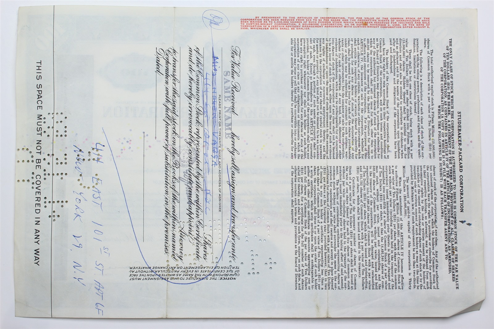 1957 Studebaker-Packard Corporation Stock Certificate - Y105671 - 100 Shares