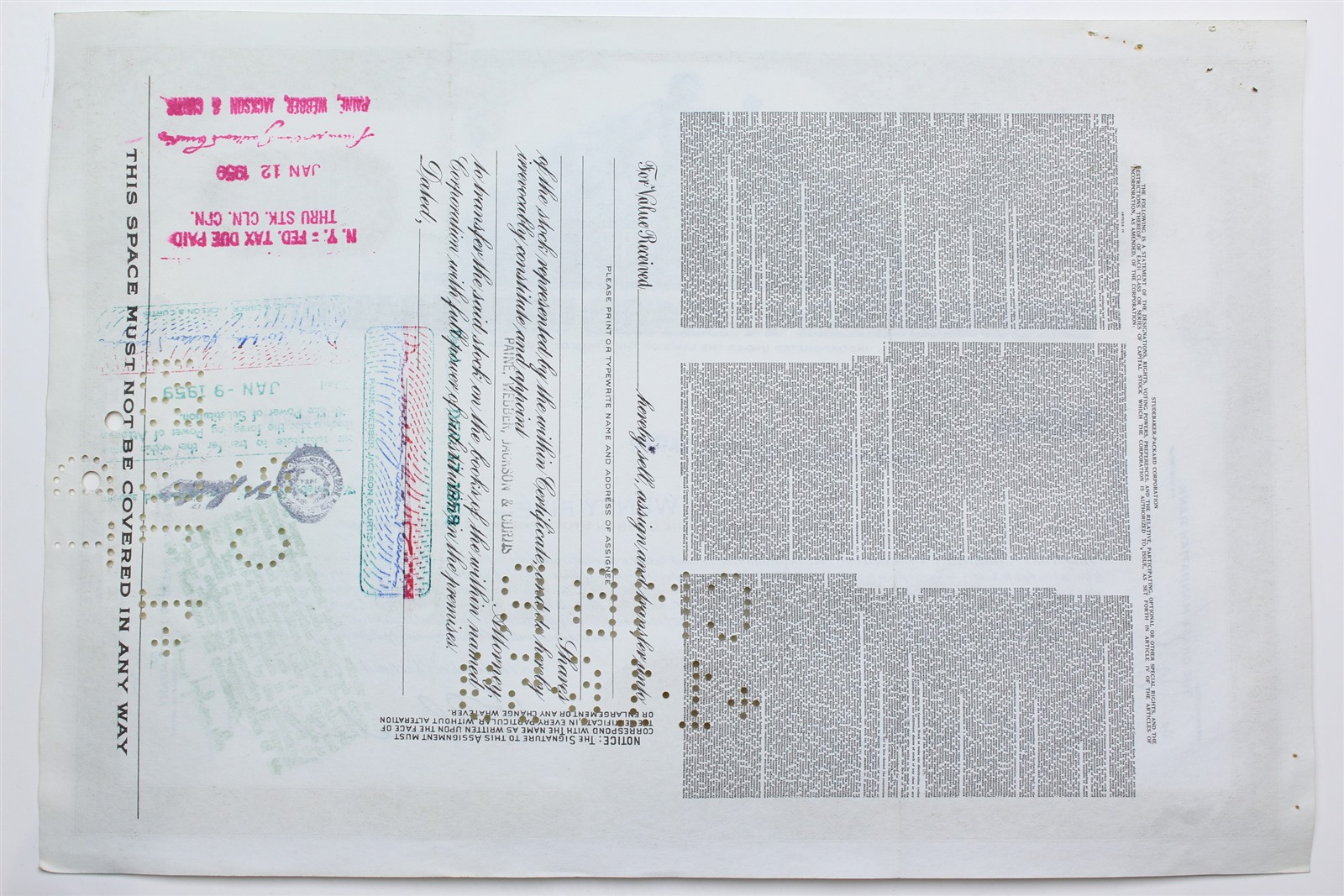 1958 Studebaker-Packard Corporation Stock Certificate - Y0157250 - 25 Shares