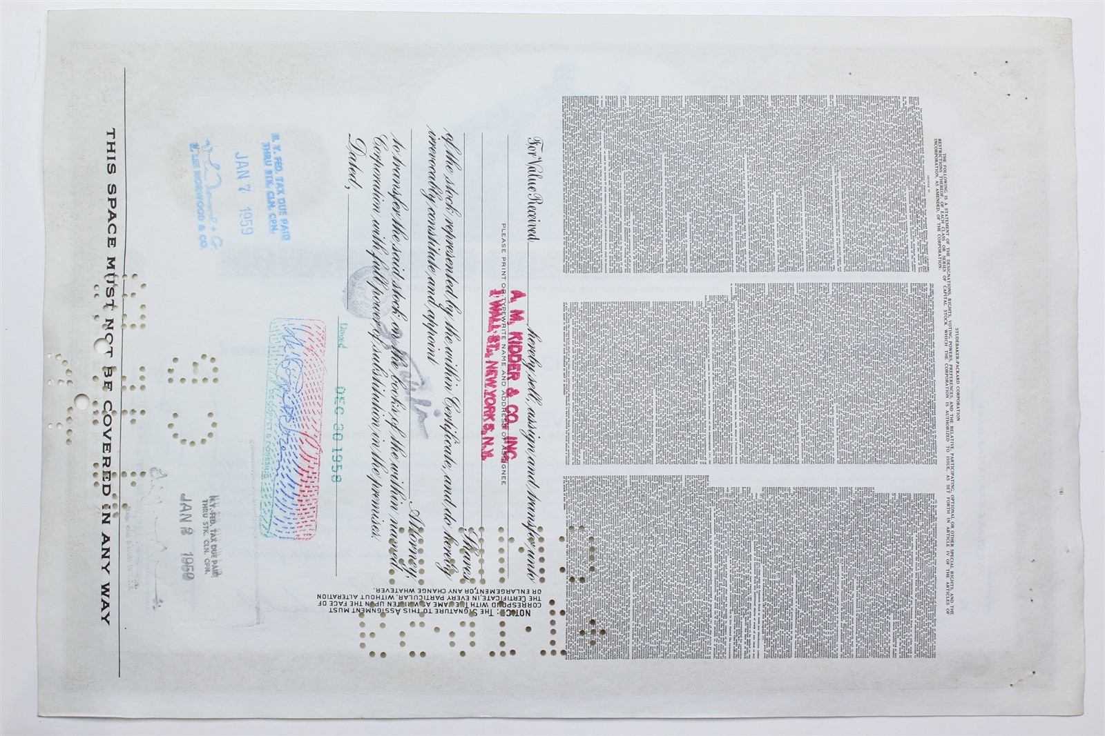1959 Studebaker-Packard Corporation Stock Certificate 10 Shares P02202