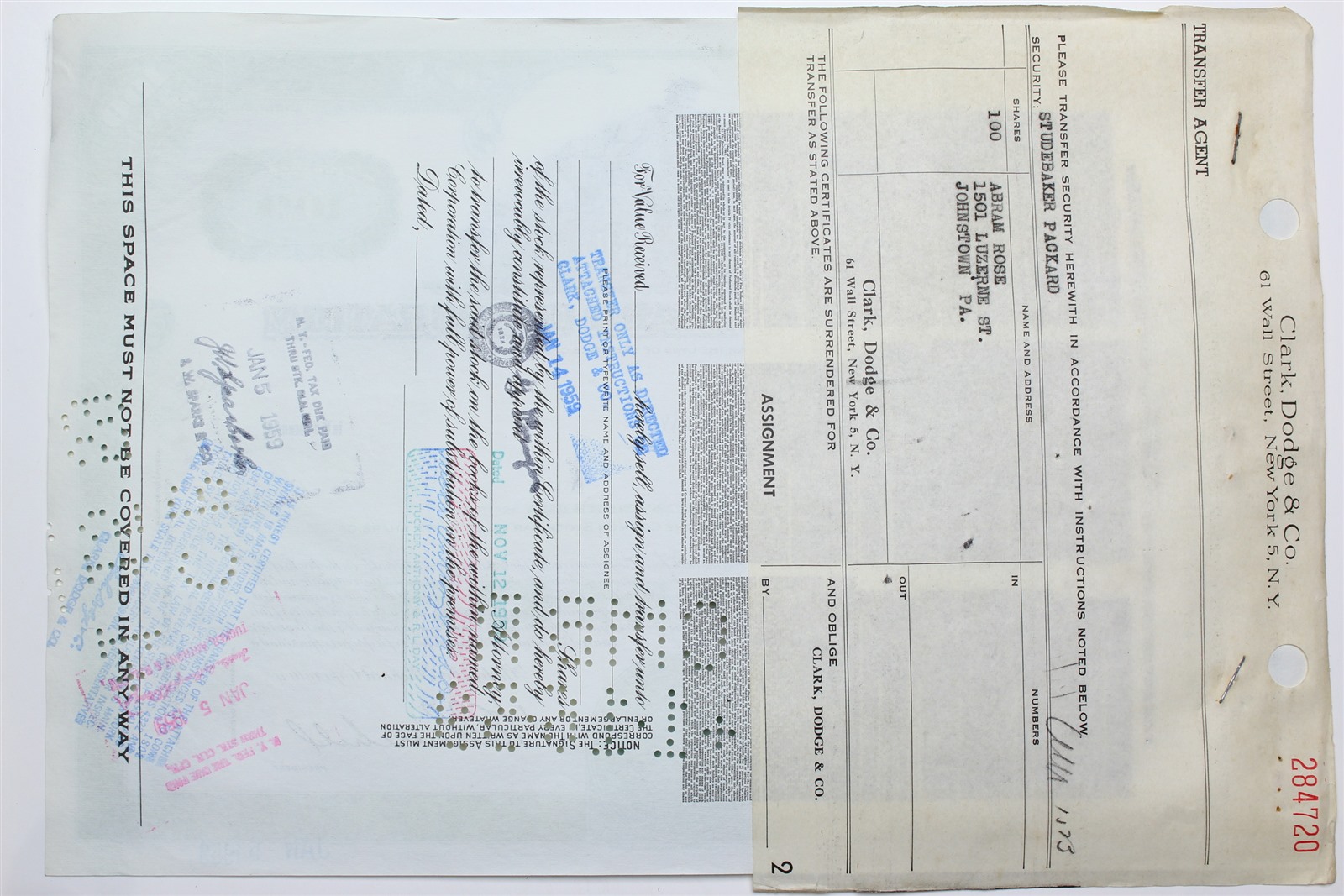 1958 Studebaker-Packard Corporation Stock Certificate - Y193438 - 100 Shares