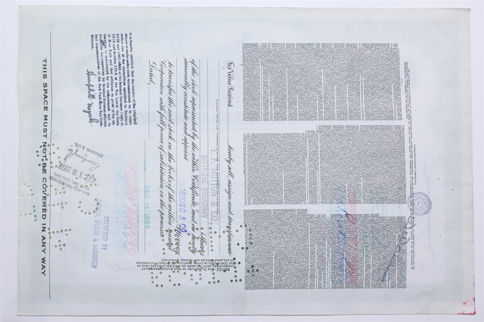1958 Studebaker-Packard Corporation Stock Certificate - Y198676 - 100 Shares