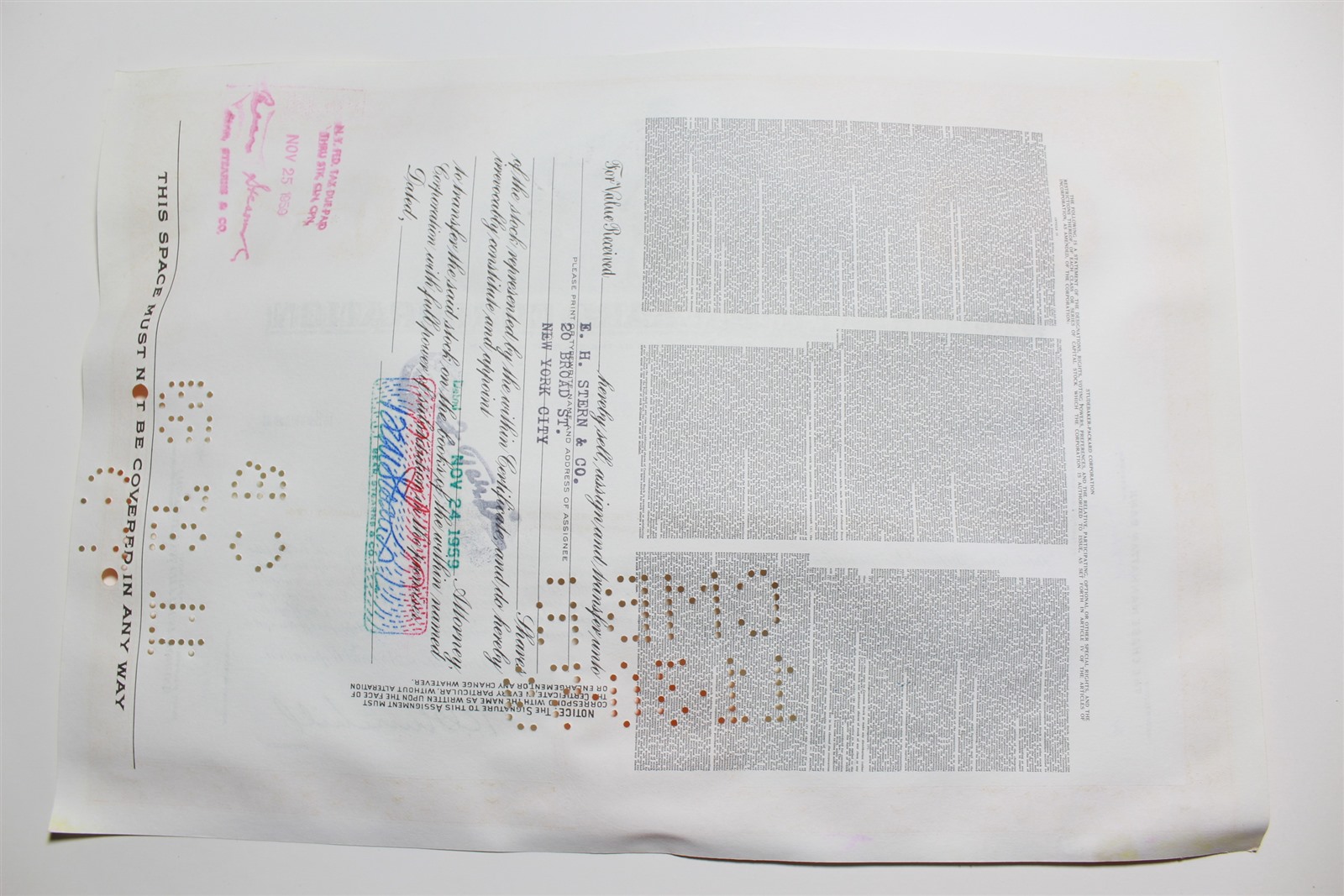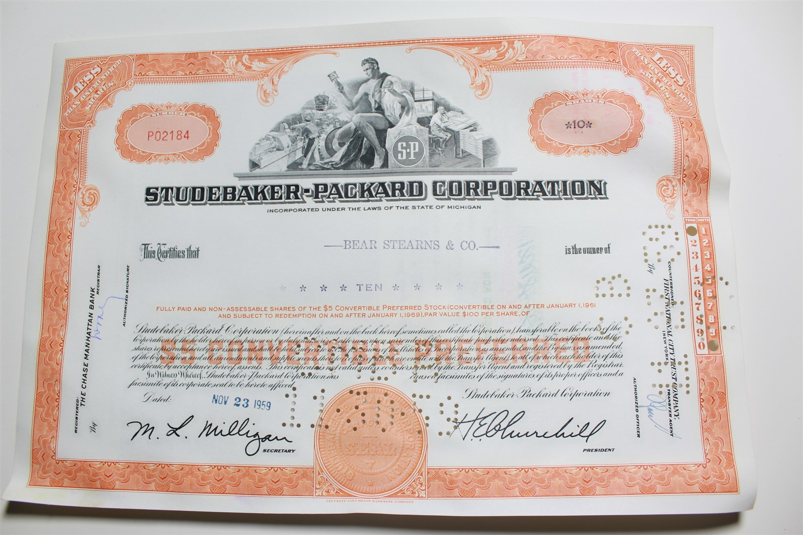 1959 Studebaker-Packard Corporation Stock Certificate 10 Shares P02184