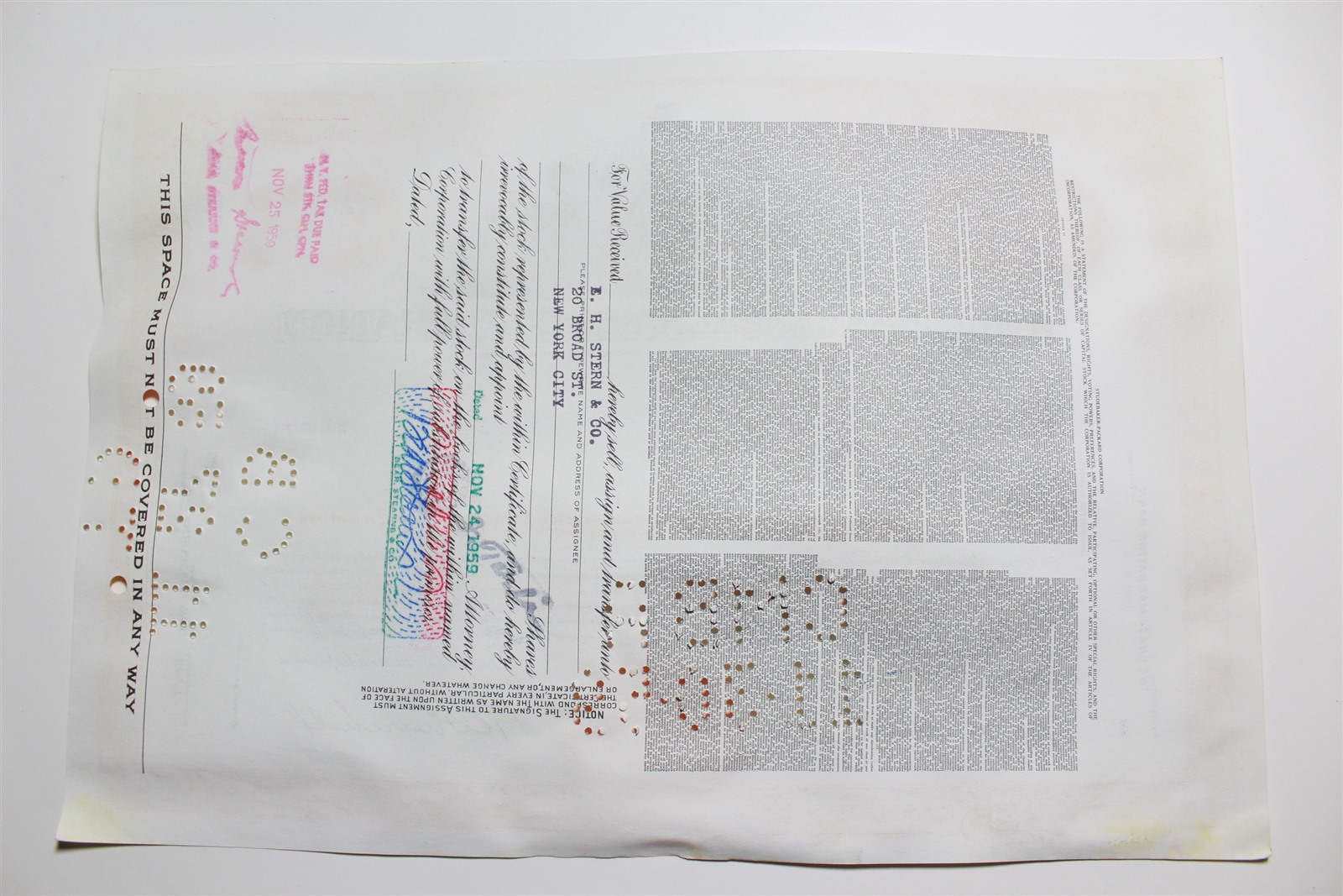 1959 Studebaker-Packard Corporation Stock Certificate 10 Shares P02202