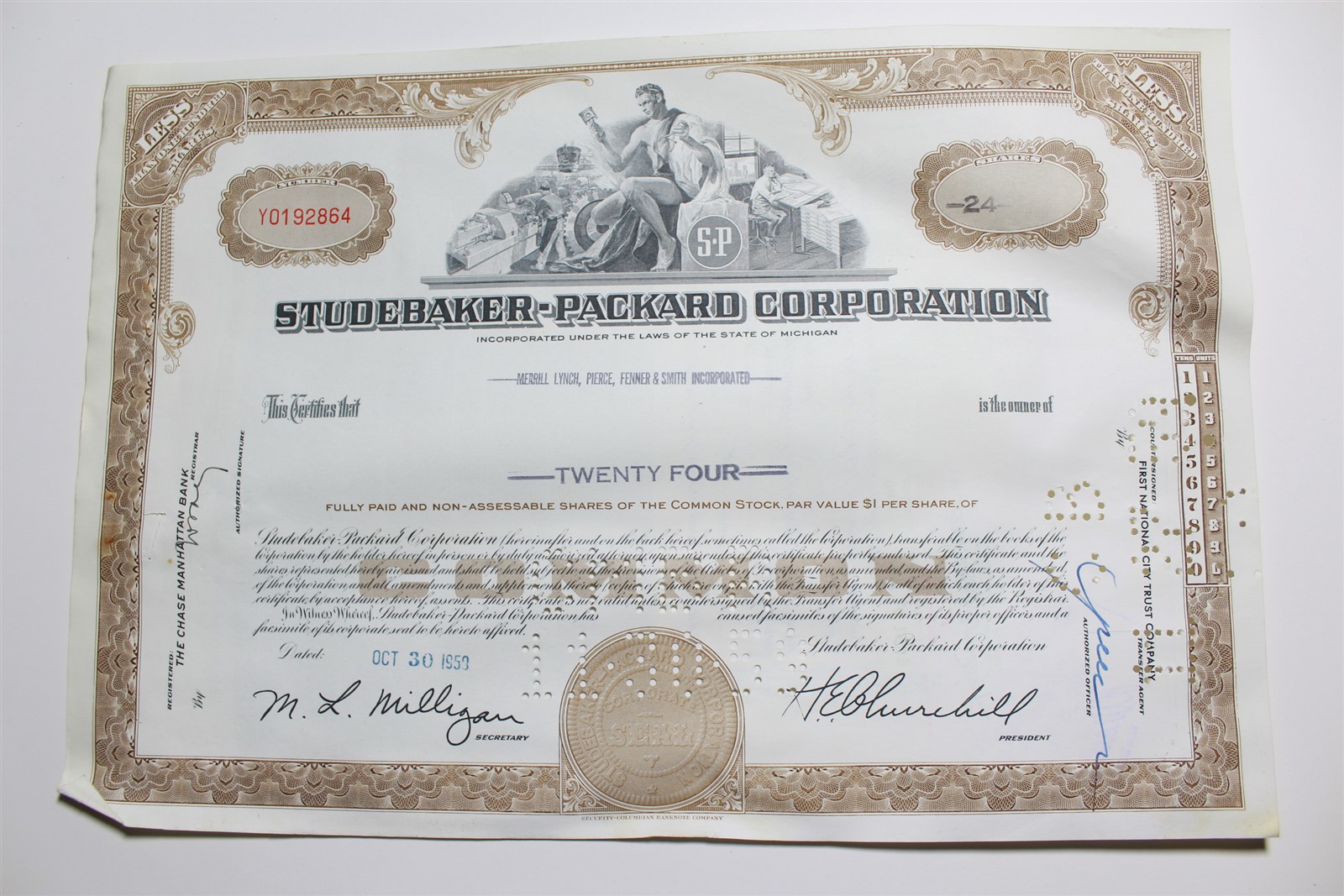 1959 Studebaker-Packard Corporation Stock Certificate 24 Shares Y0192864