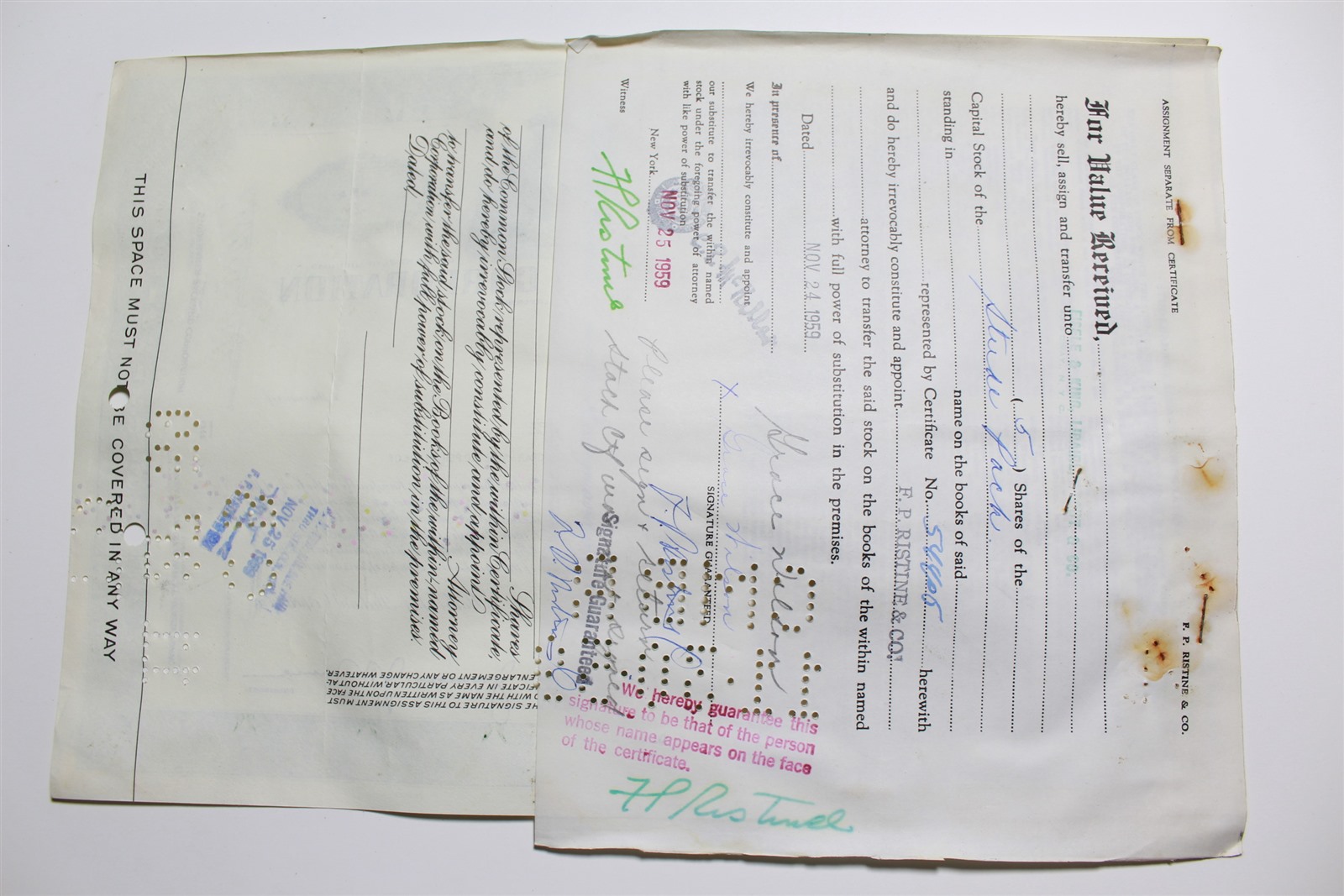 1959 Studebaker-Packard Corporation Stock Certificate 5 Shares P054405