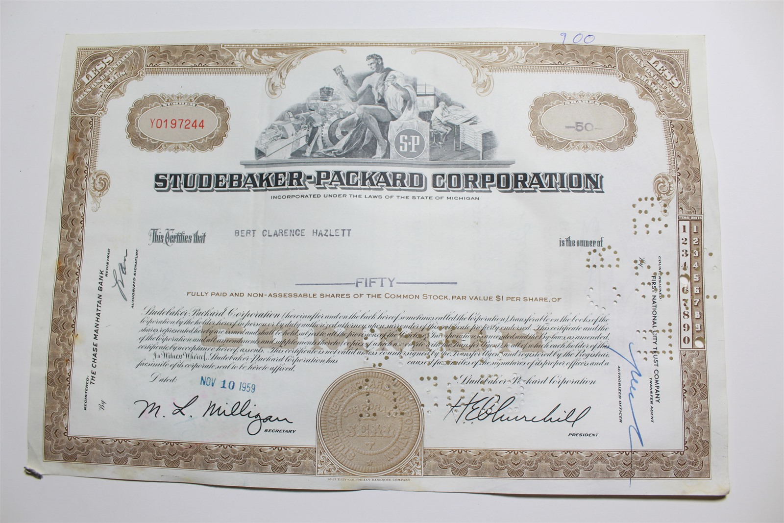 1959 Studebaker-Packard Corporation Stock Certificate 50 Shares Y0197244