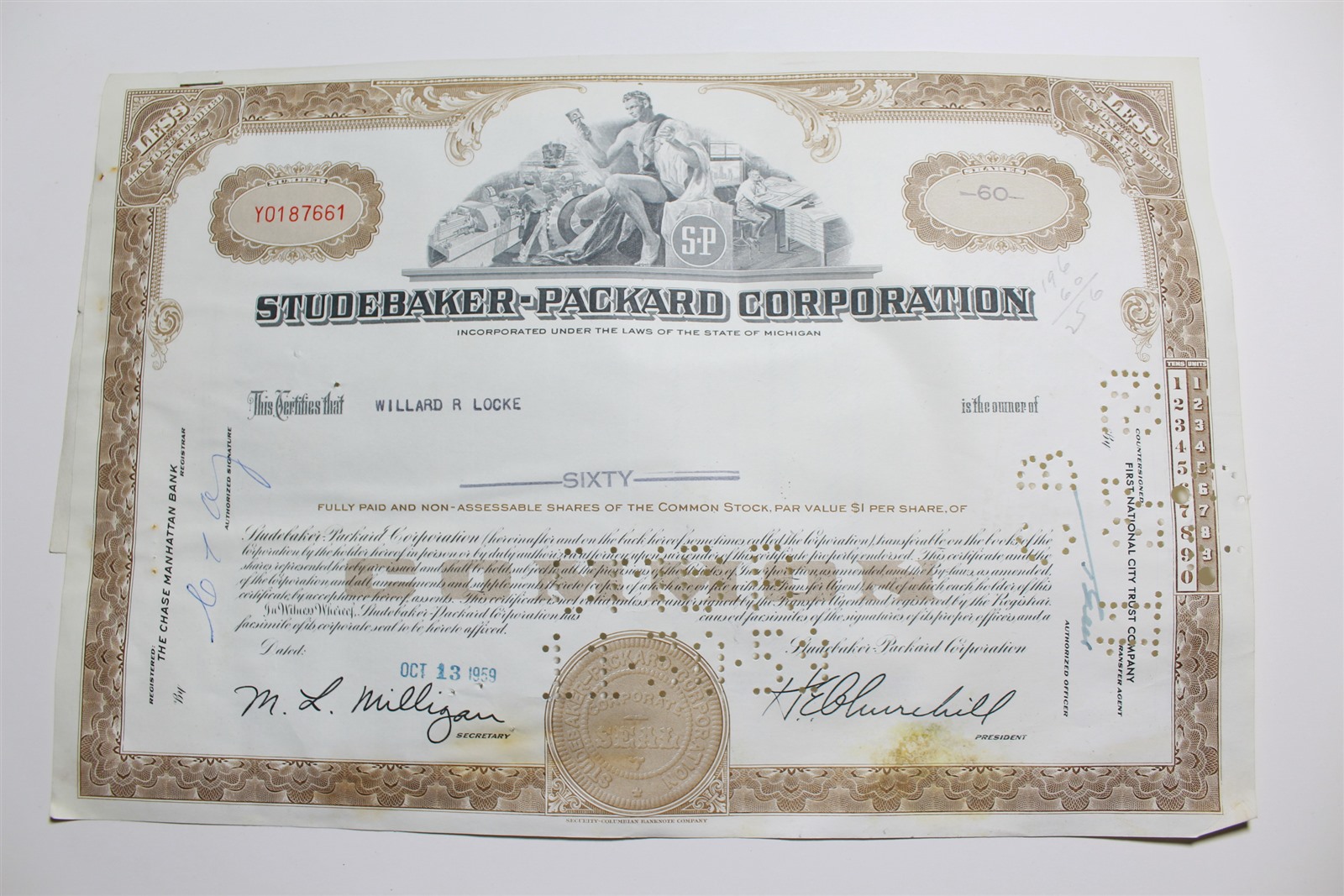 1959 Studebaker-Packard Corporation Stock Certificate 60 Shares Y0187661