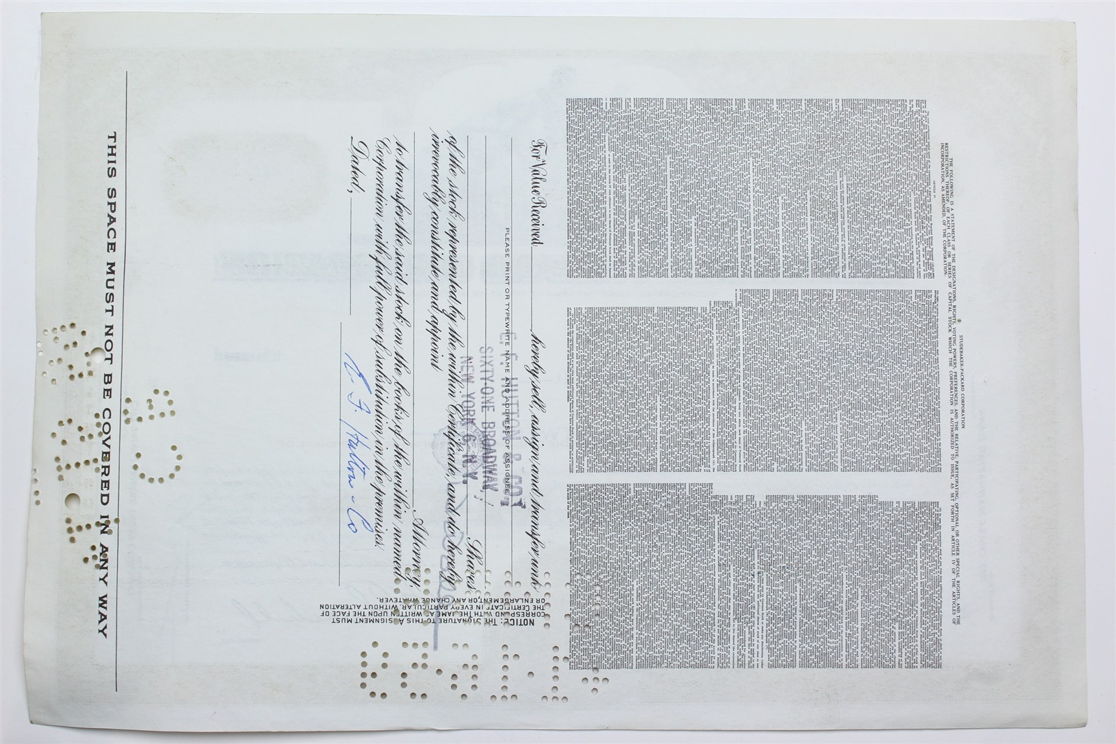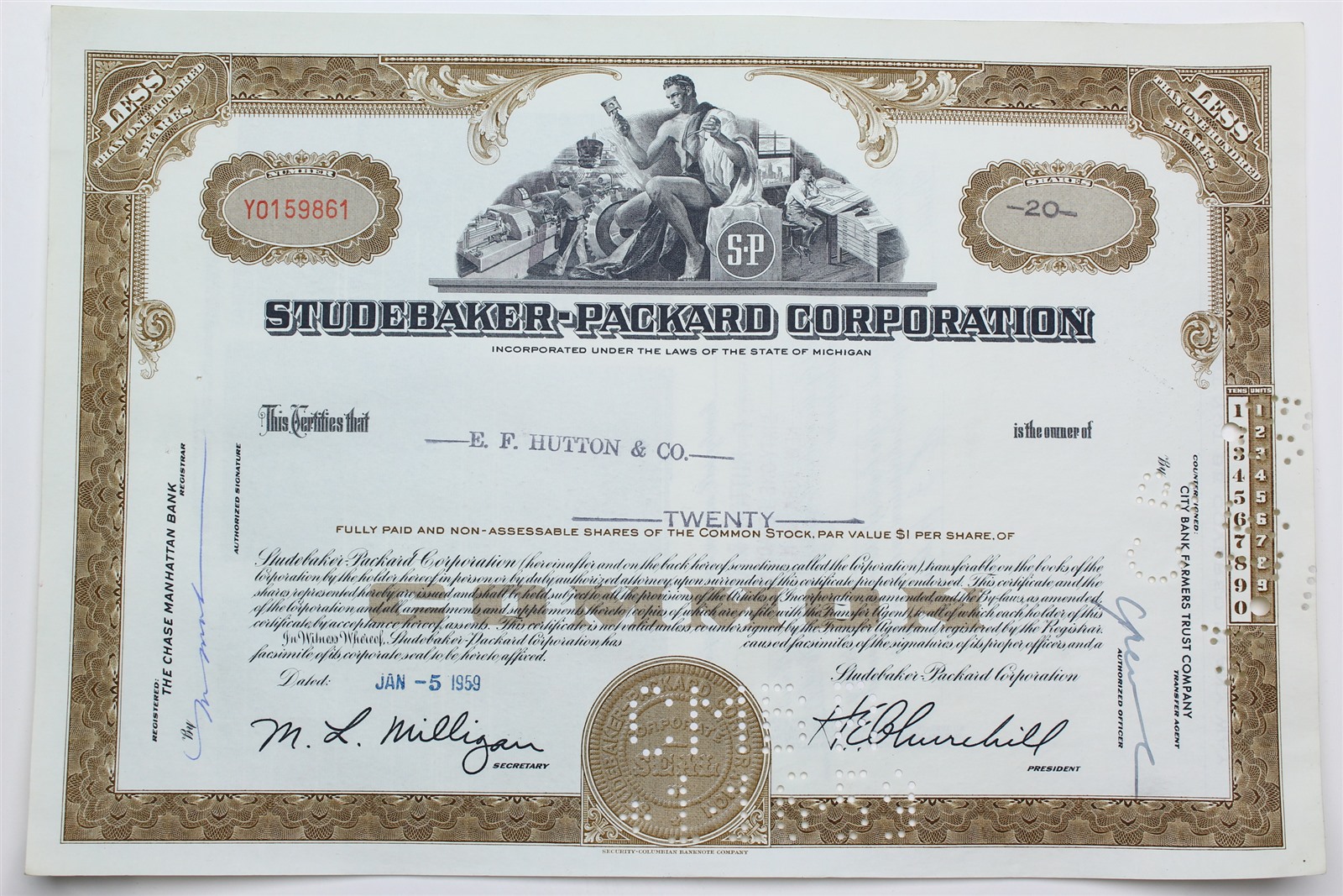 1959 Studebaker-Packard Corporation Stock Certificate - Y0159861 - 20 Shares
