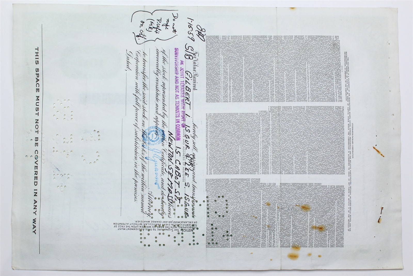 1959 Studebaker-Packard Corporation Stock Certificate - Y205651 - 100 Shares