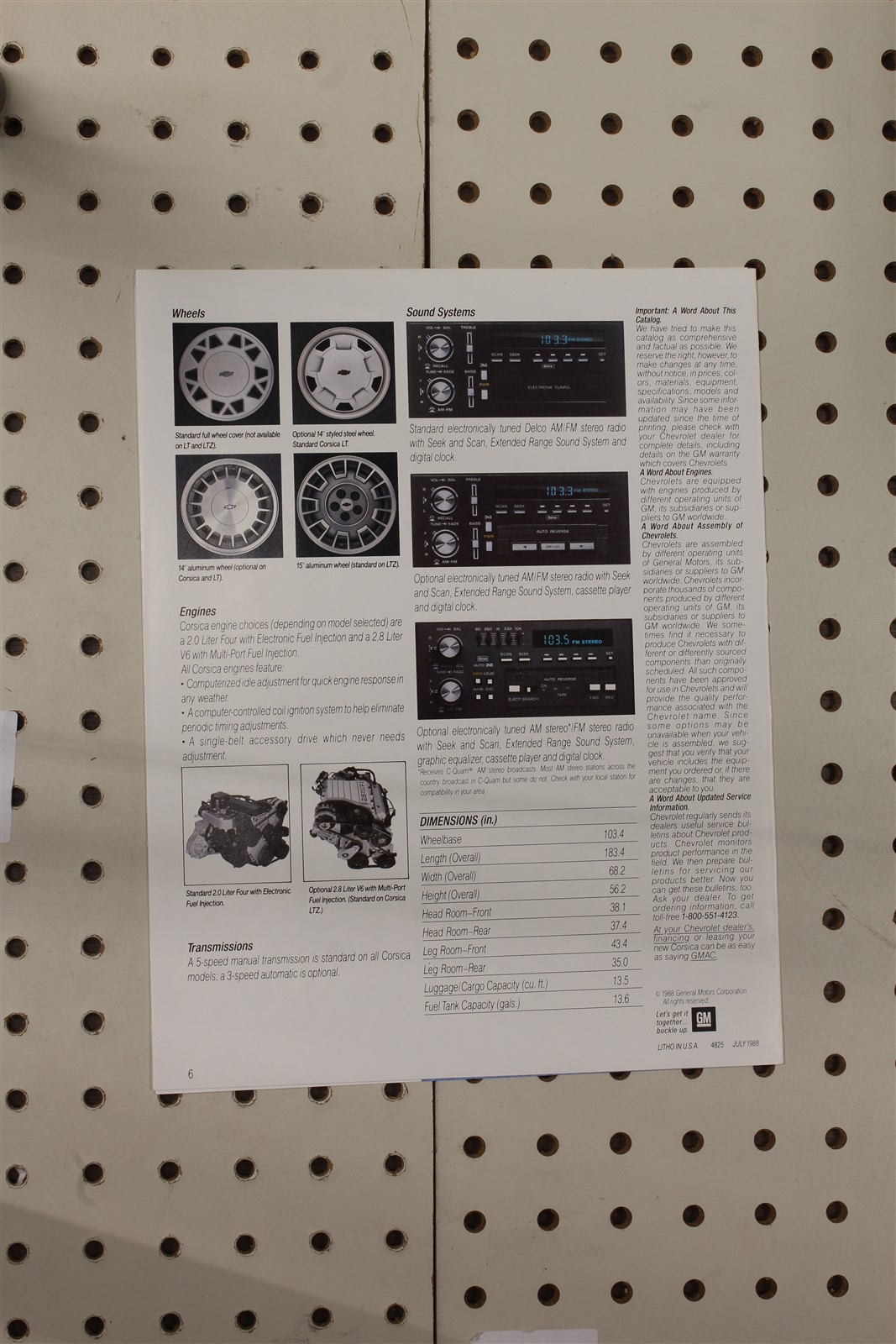 1989 Chevrolet Corsica Brochure 5 Pages