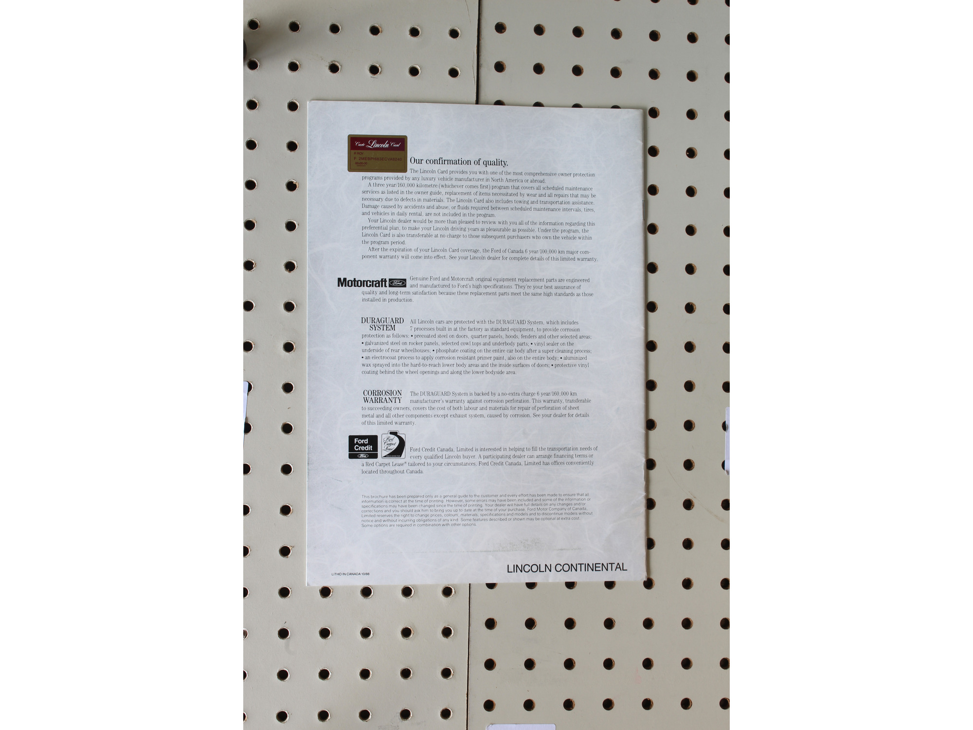 1989 Lincoln Continental Brochure 21 Pages