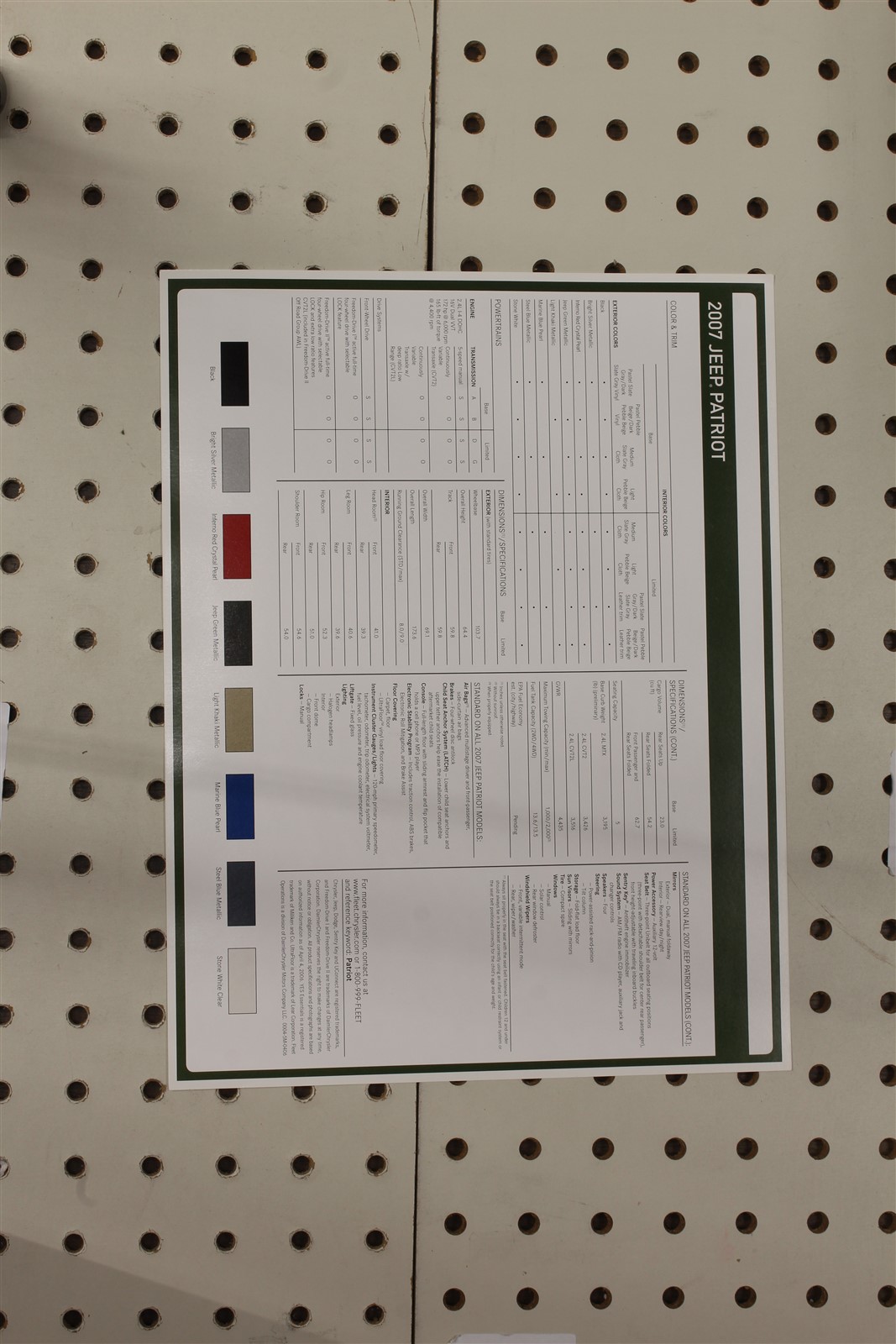2007 Jeep Patriot Flyer(Single Page) Color Chart