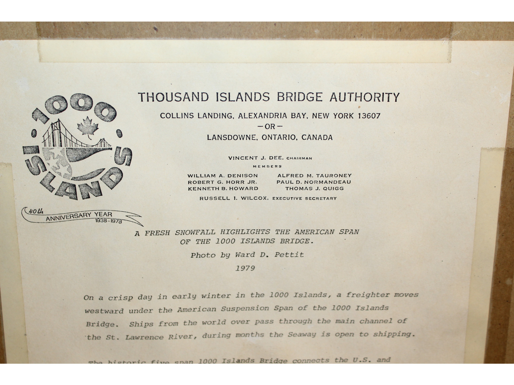 20.5 x 15 Print board Framed 1000 ISLANDS BRIDGE 1979
