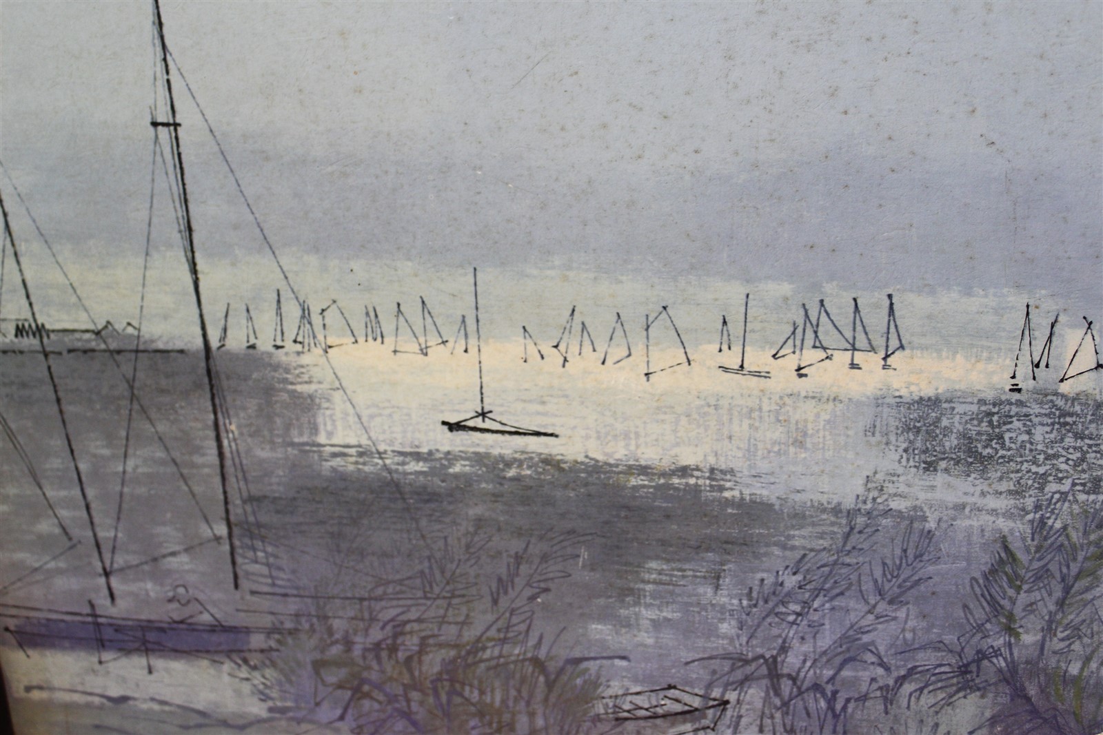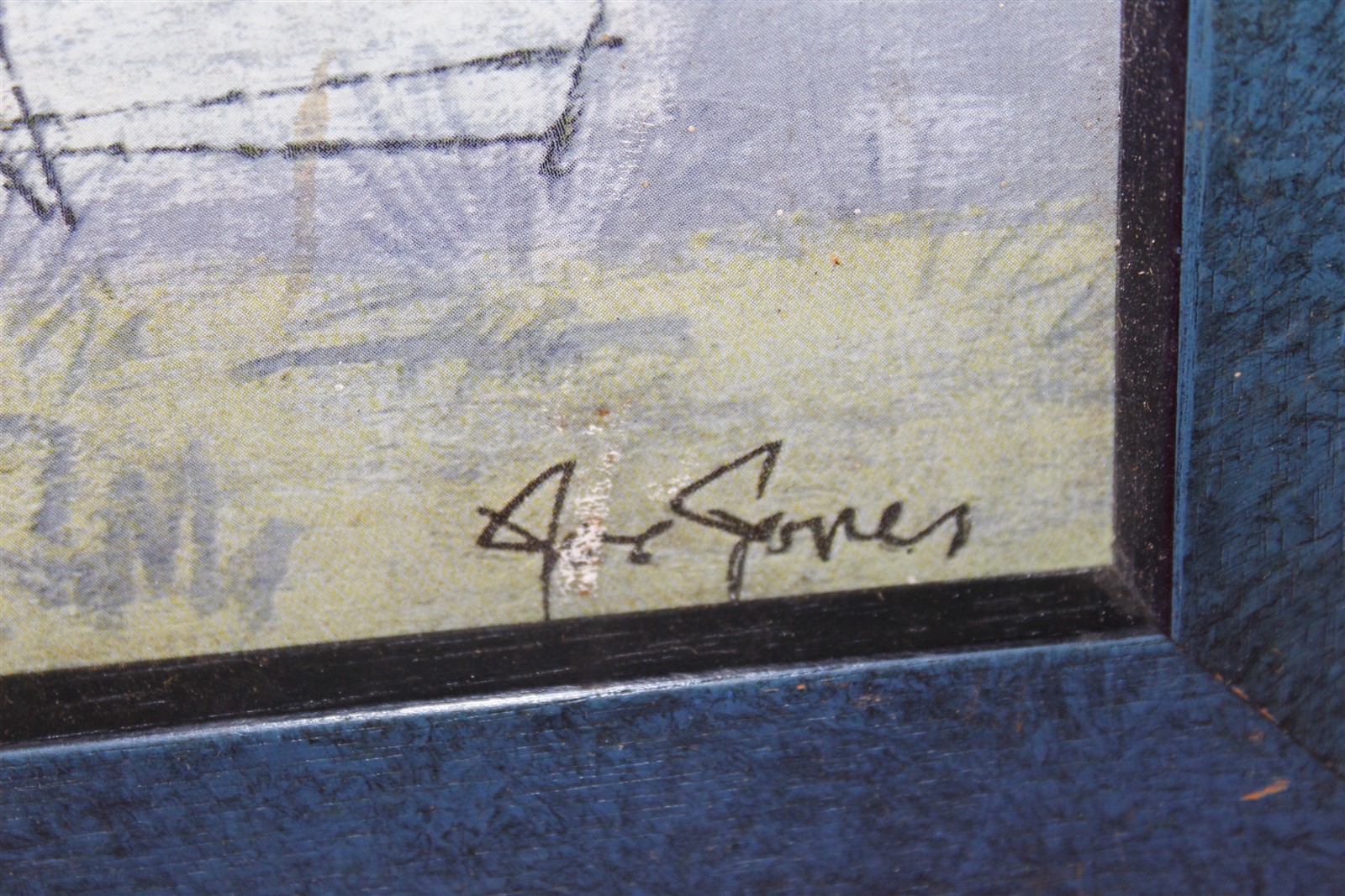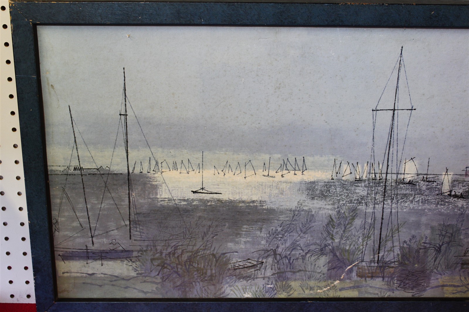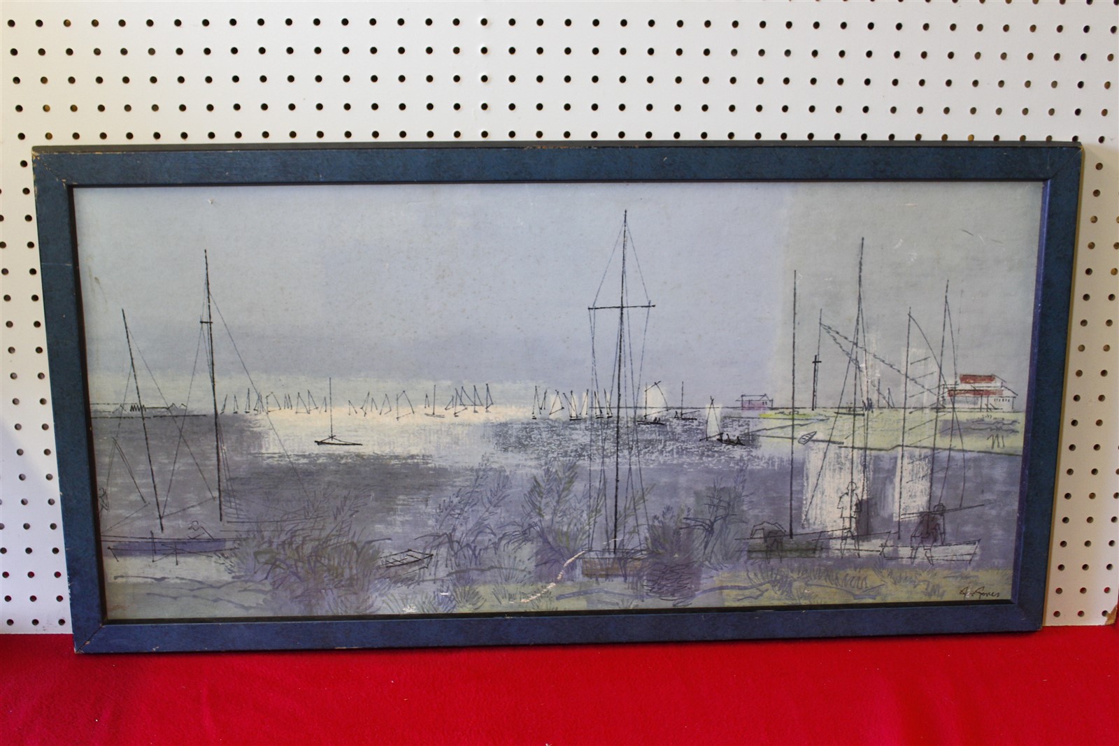 38.5 x 19.5 Framed art seaside sailboats signed Jones