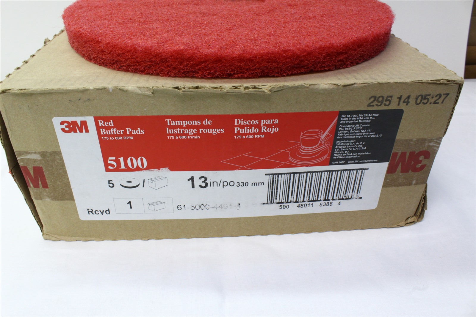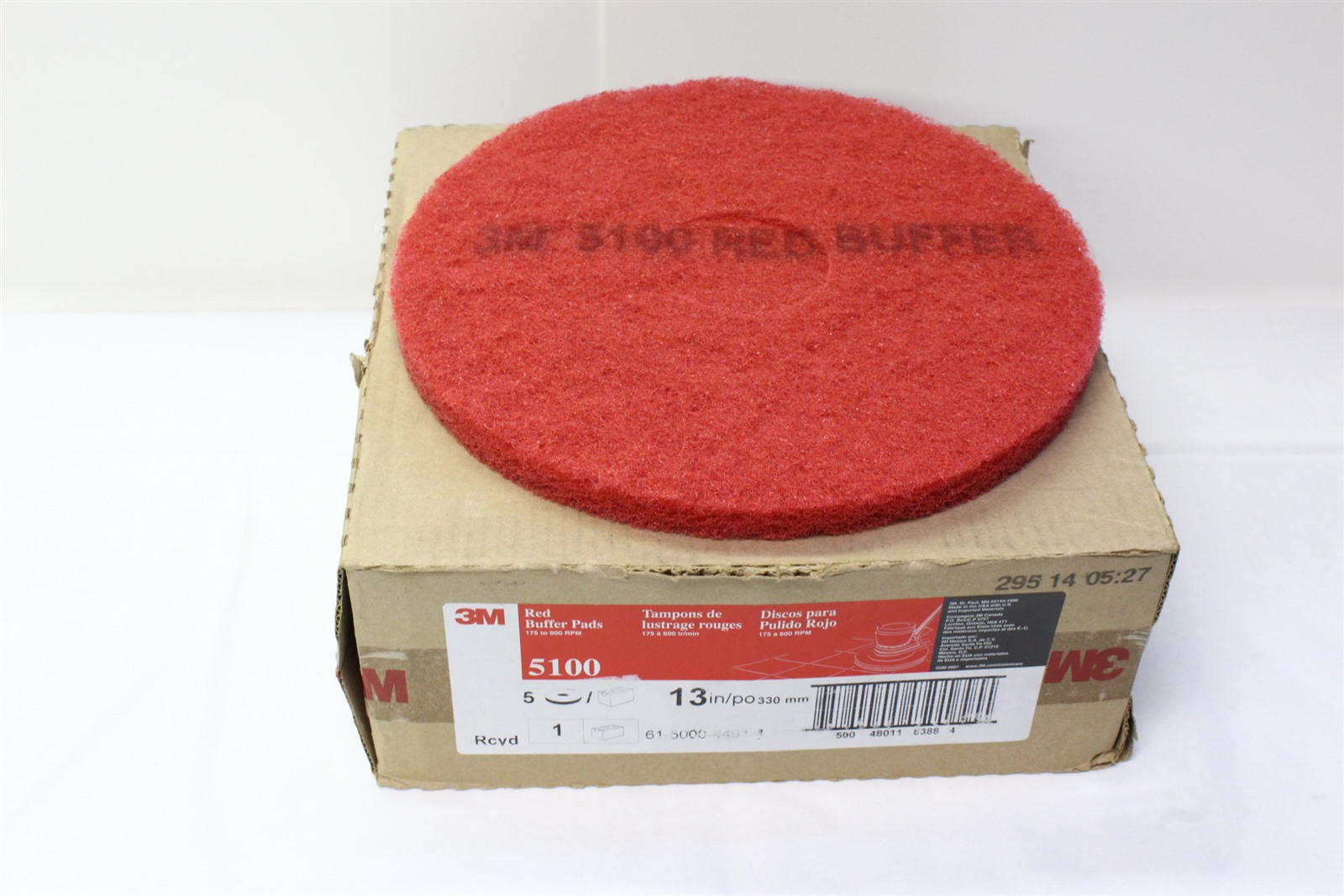 3M 5100 13" Red Buffing Floor Pad - 5/Case - 7910014394464 50048011083884