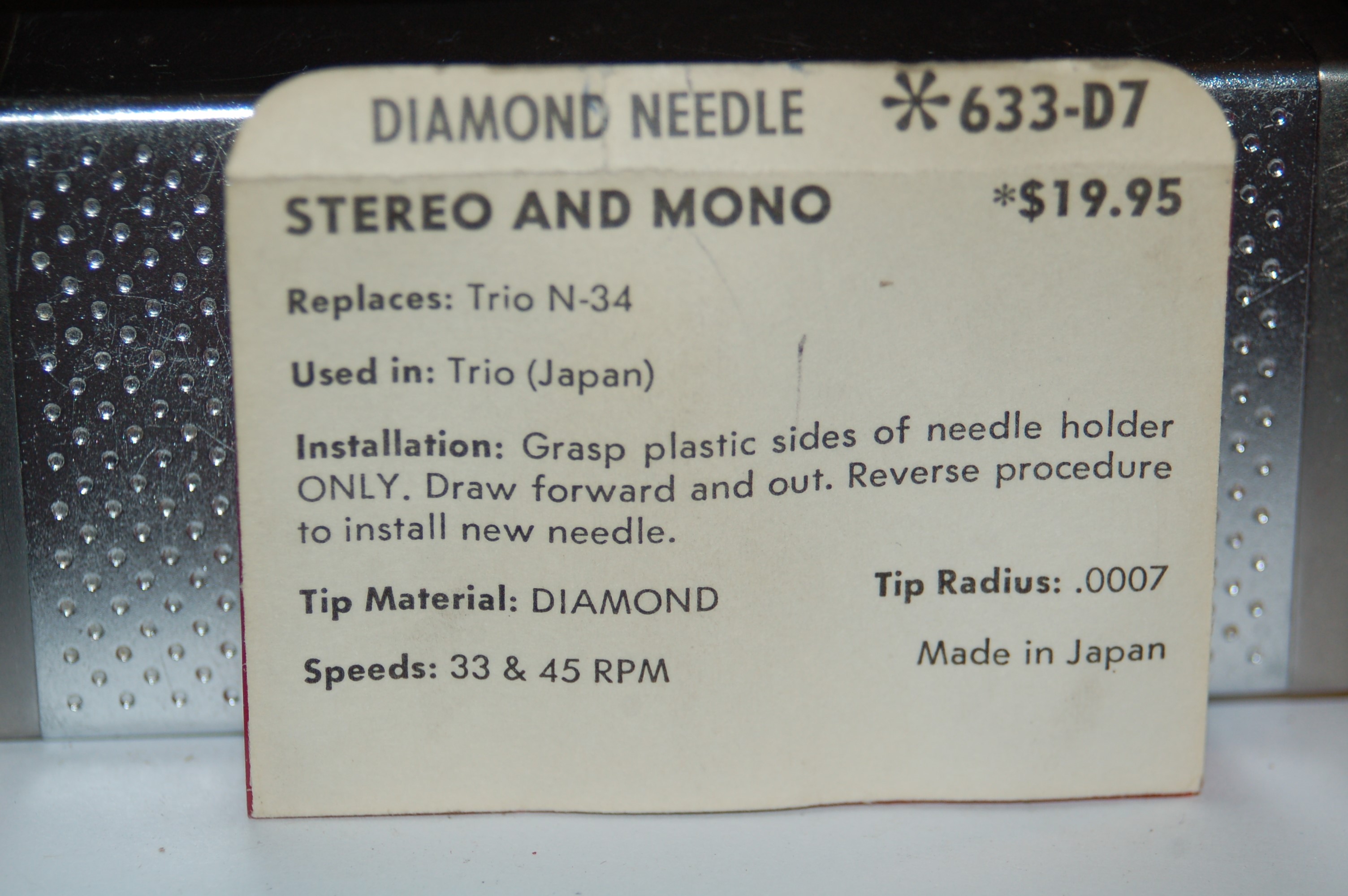 633-D7 Pfanstiehl Diamond Needles Stylus Cartridge #268 Original Package
