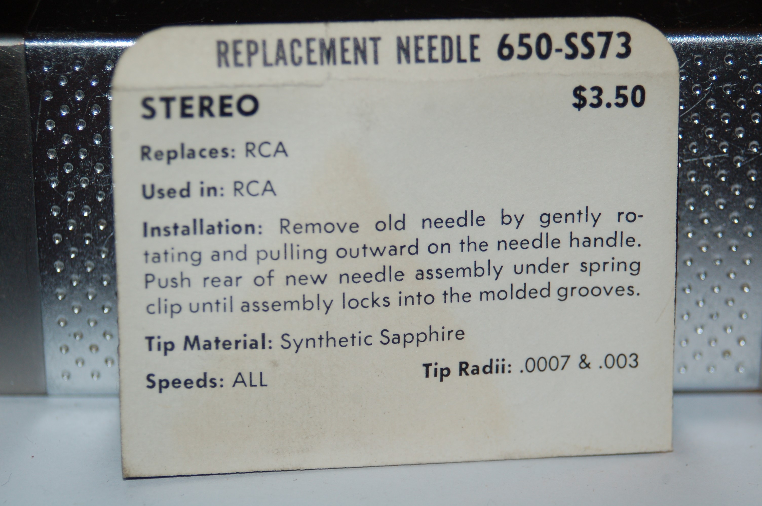 650-SS73 Pfanstiehl Diamond Needles Stylus Cartridge #298 Original Package