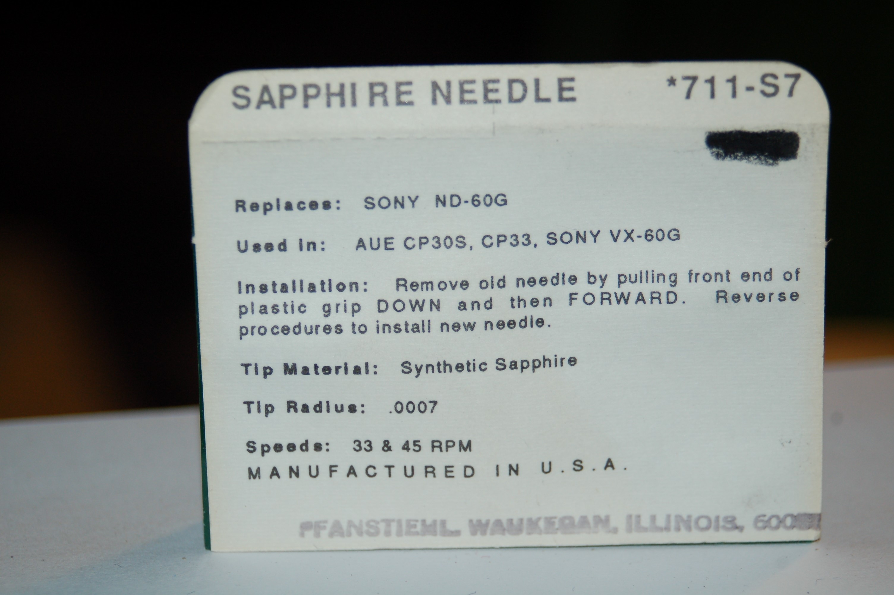 711-S7 Pfanstiehl Diamond Needles Stylus Cartridge #412 Original Package