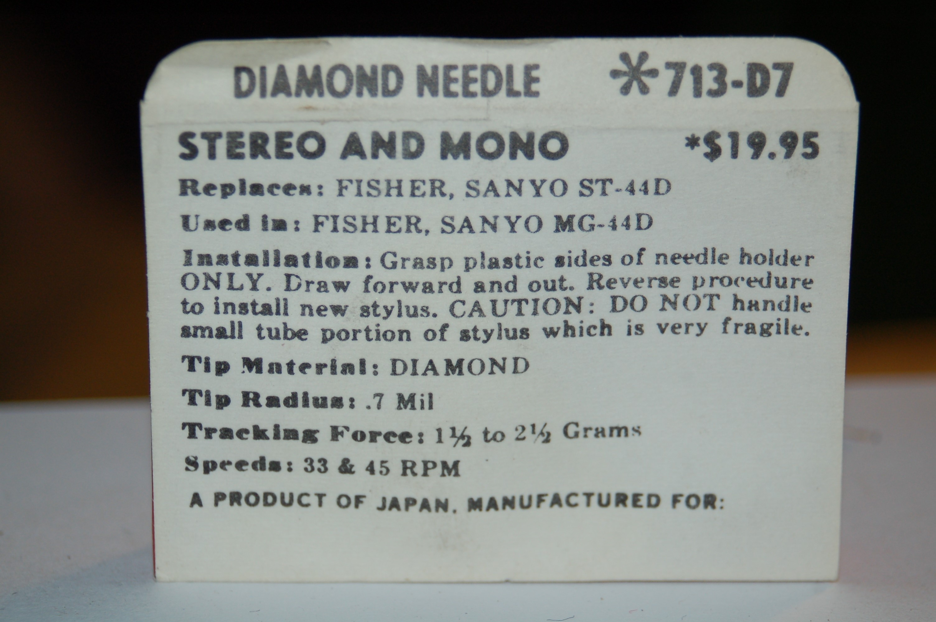 713-D7 Pfanstiehl Diamond Needles Stylus Cartridge #417 Original Package