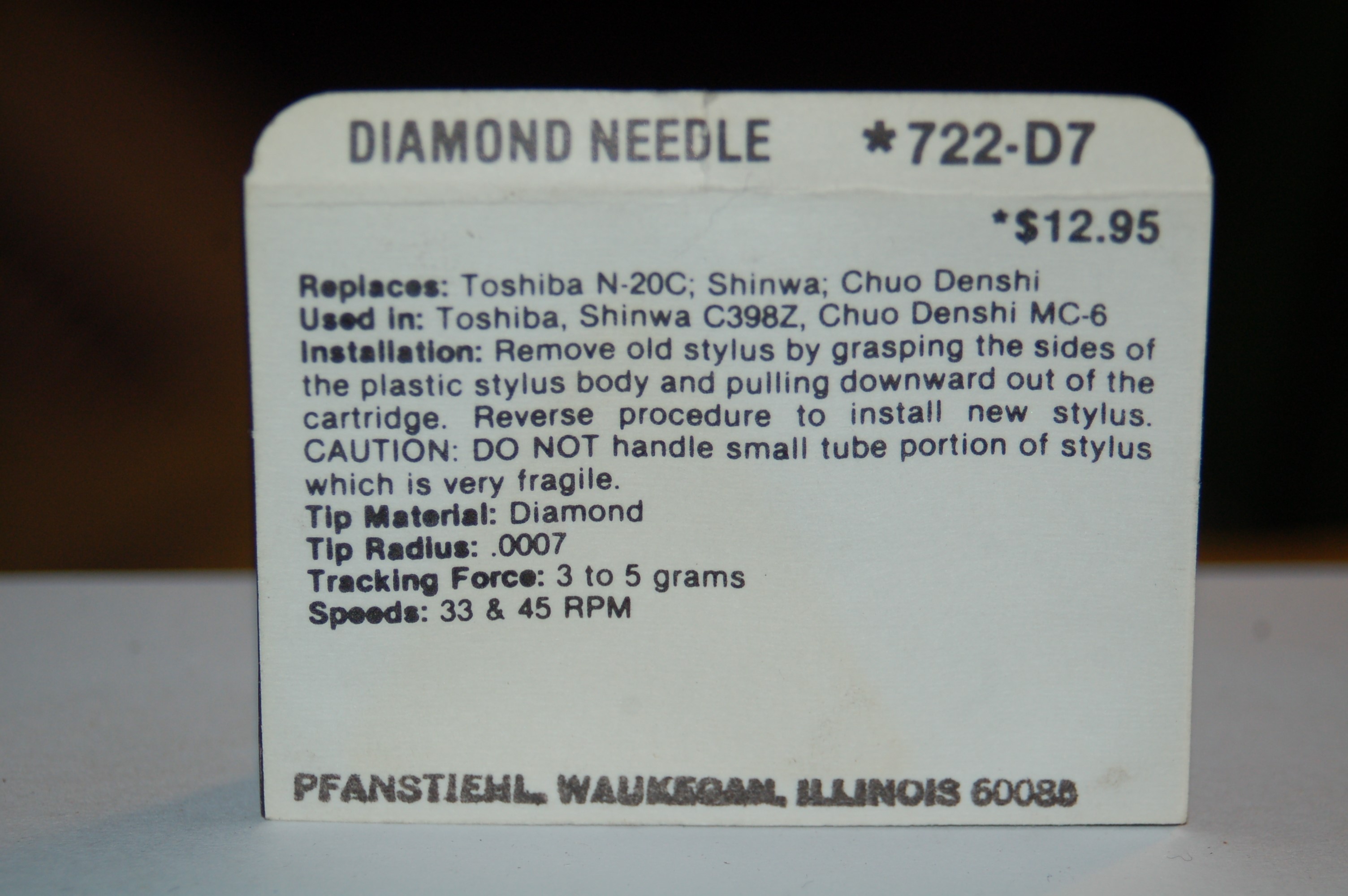 722-D7 Pfanstiehl Diamond Needles Stylus Cartridge #442 Original Package