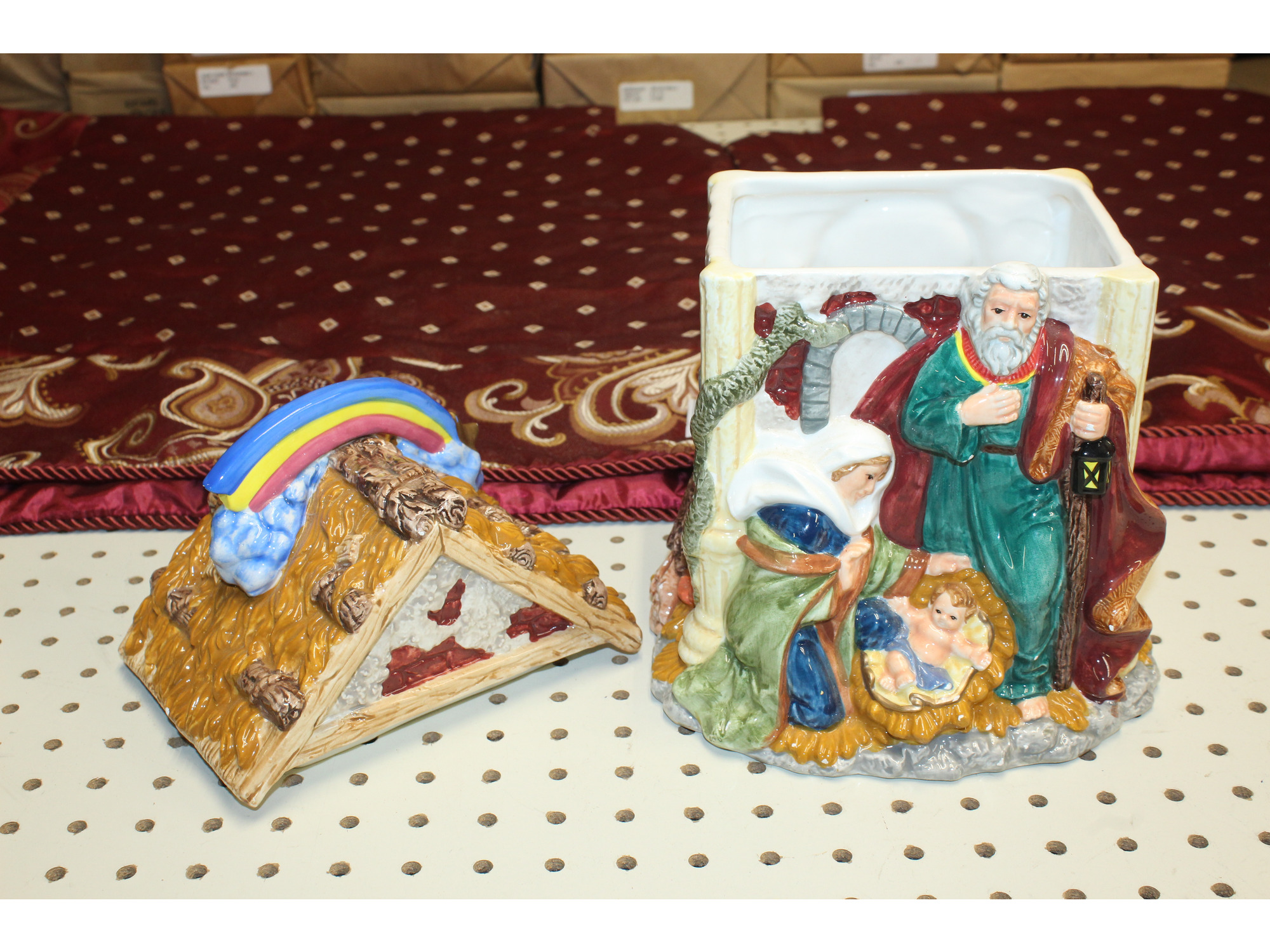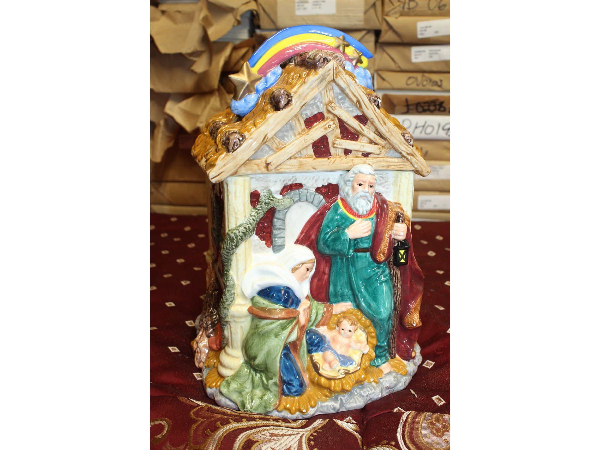 Christmas Nativity Rainbow Cookie Jar Baby Jesus by Mercuries Holiday Ceramic