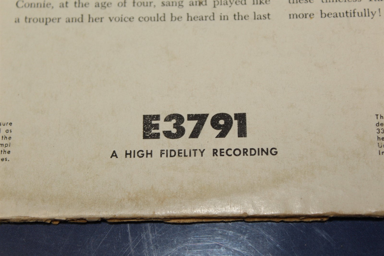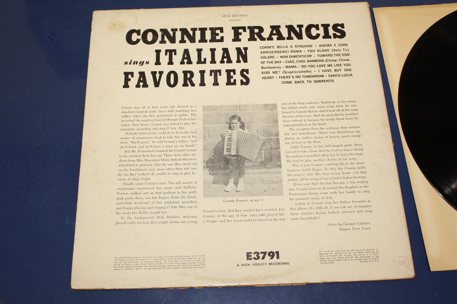Connie Francis Sings Italian Favorites E3791 Vinyl LP, Album, Mono