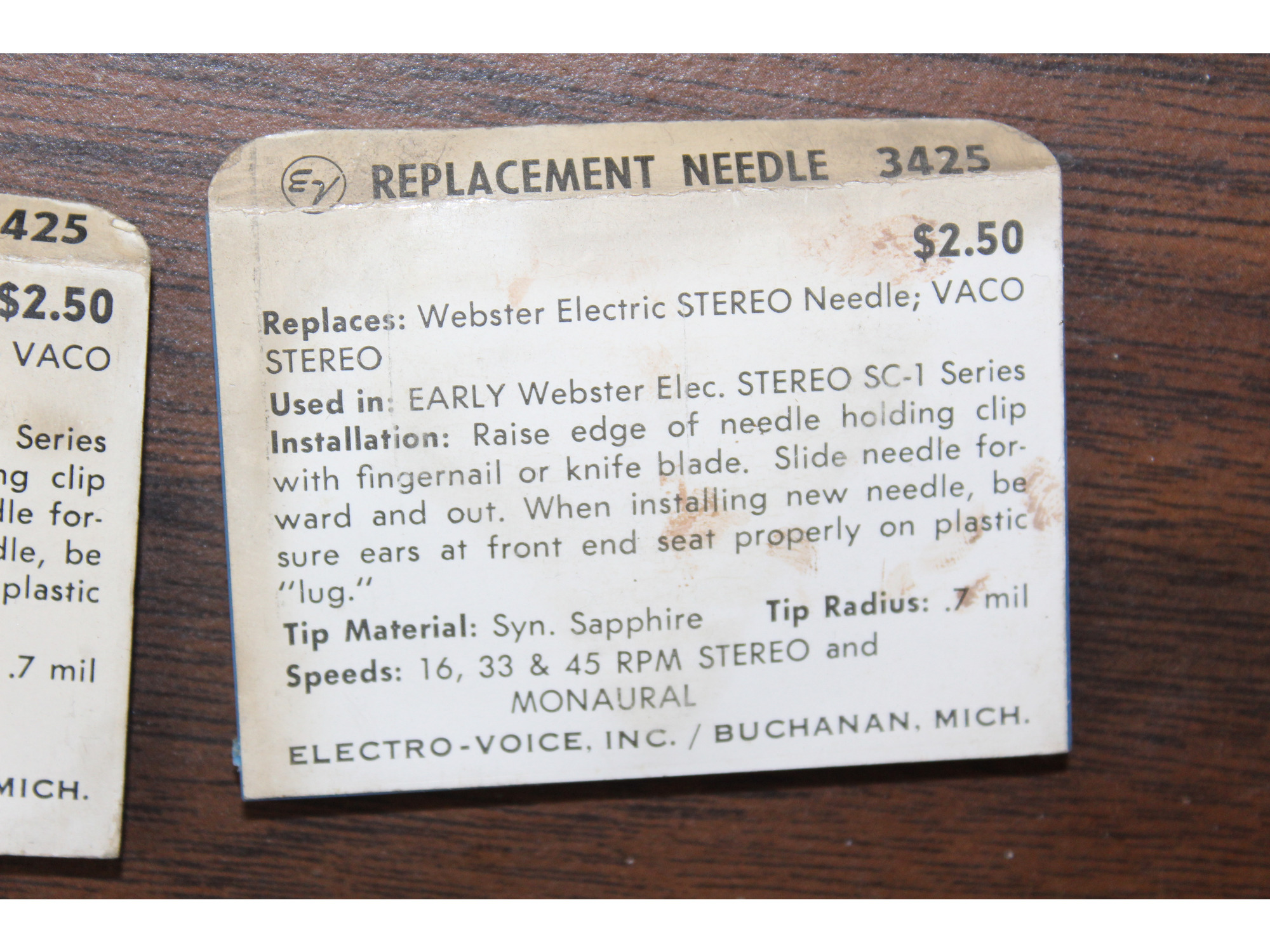 Electro-Voice Replacement Phonograph Needle Stylus 3425