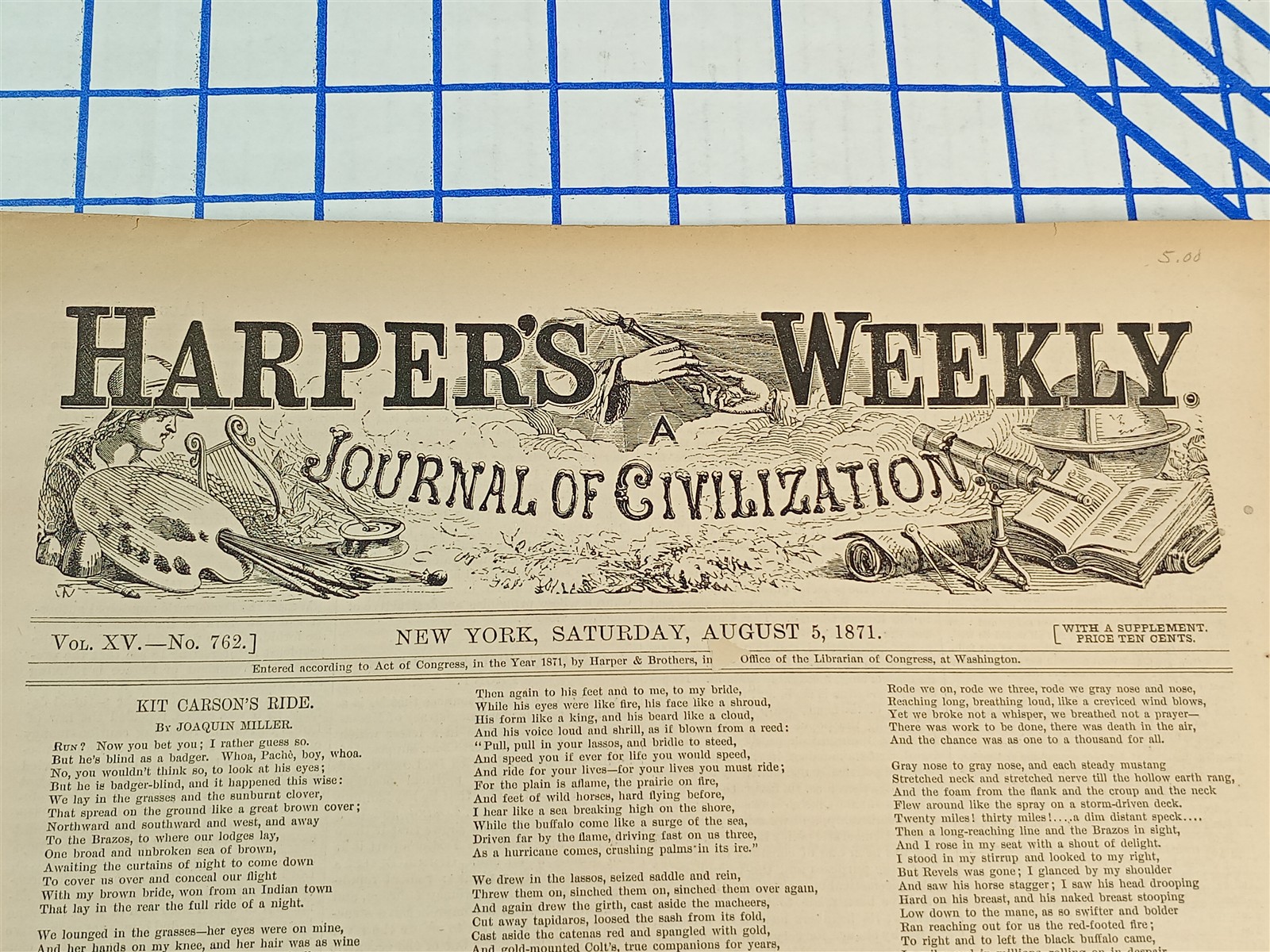 HARPERS WEEKLY JOURNAL OF CIVILIZATION NEW YORK SAT. AUG. 5 1871 VOL. XV NO. 762