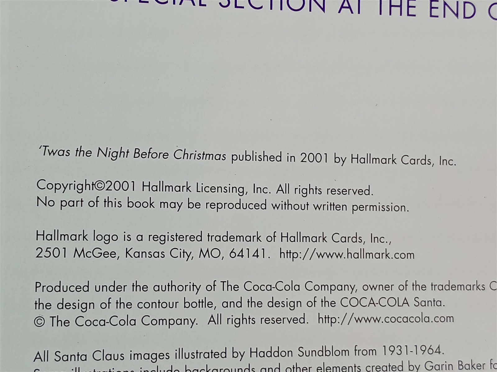 Twas the Night Before Christmas Clement C. Moore COCA-COLA Santa Tribute