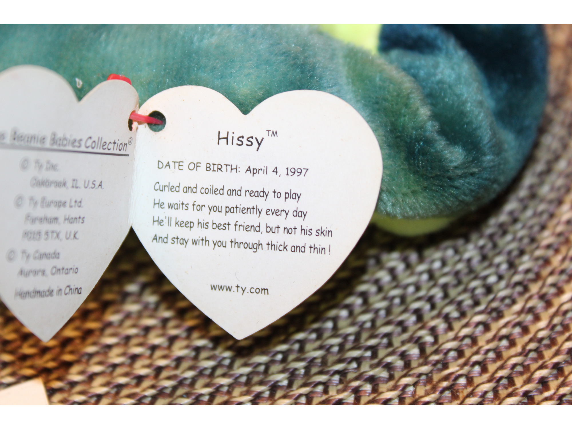 TY Beanie Babies Hissy 1997 P.E. Pellets