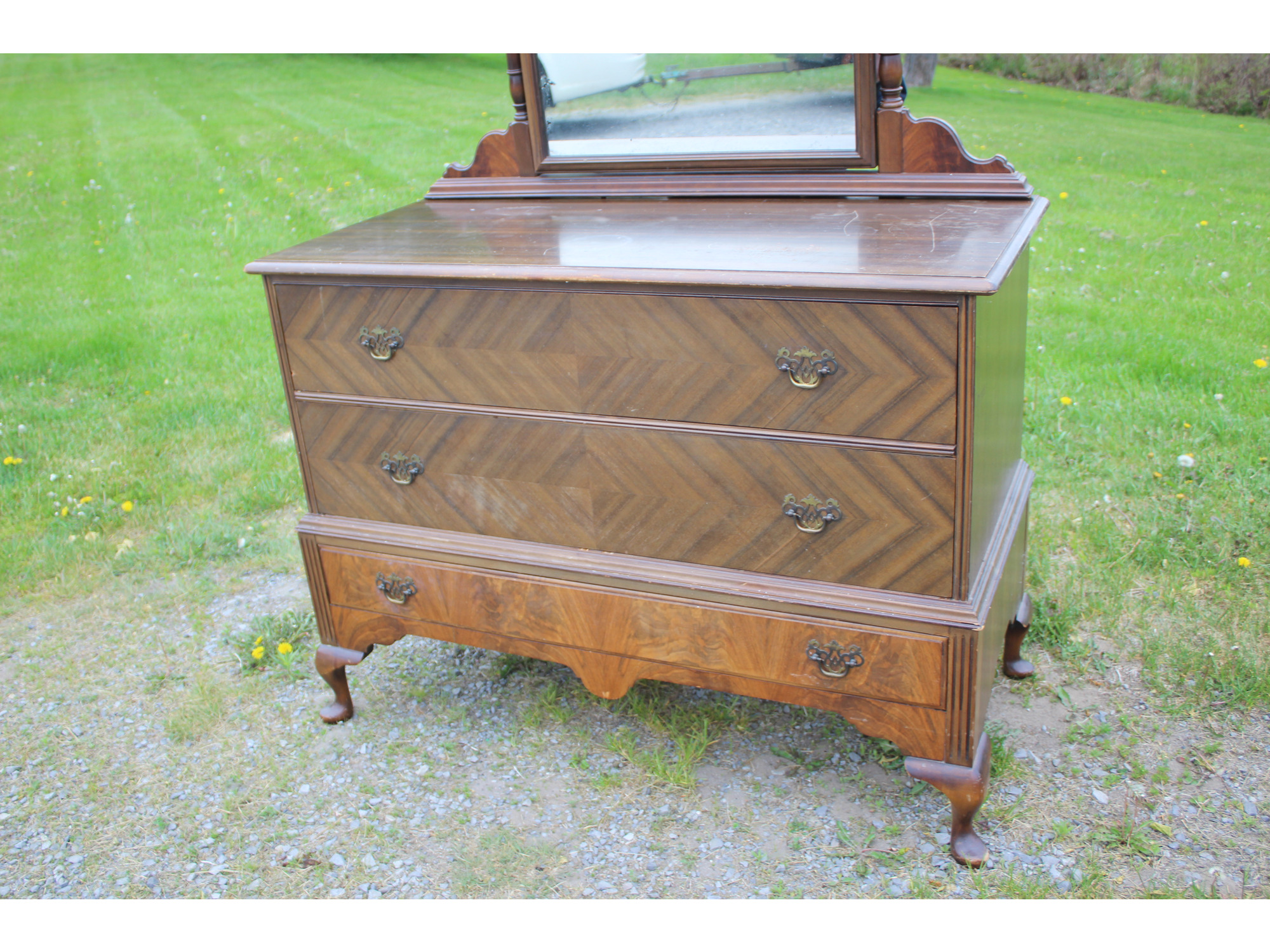 Vintage BERKEY & GAY Furniture 3 Drawer DRESSER WITH MIRROR - 48" x 22.5" x 75"