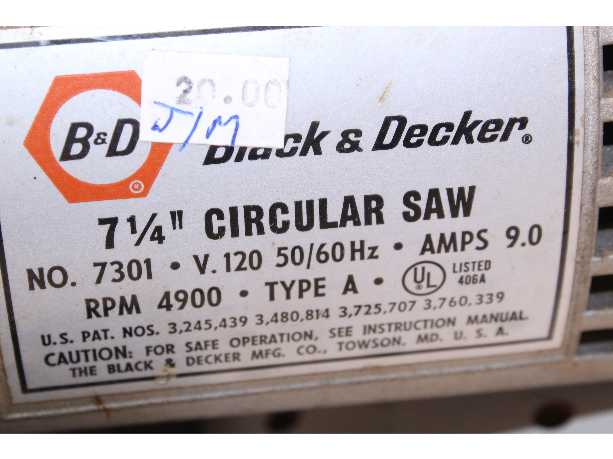 Vintage Black & Decker circular saw model number 7301