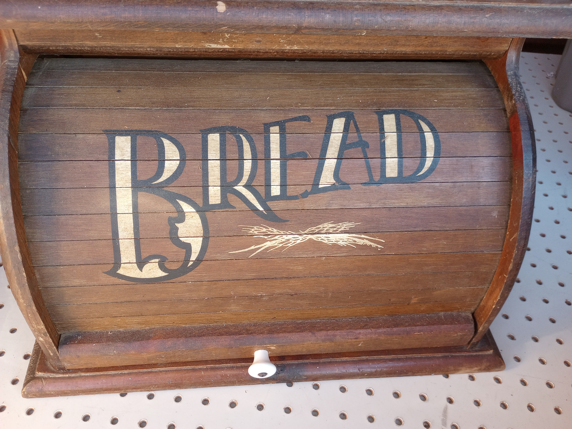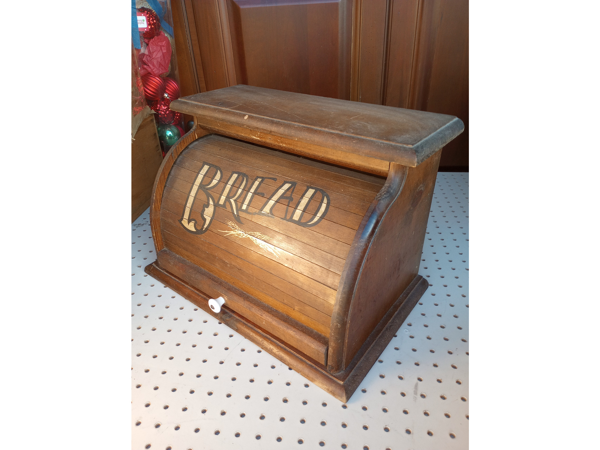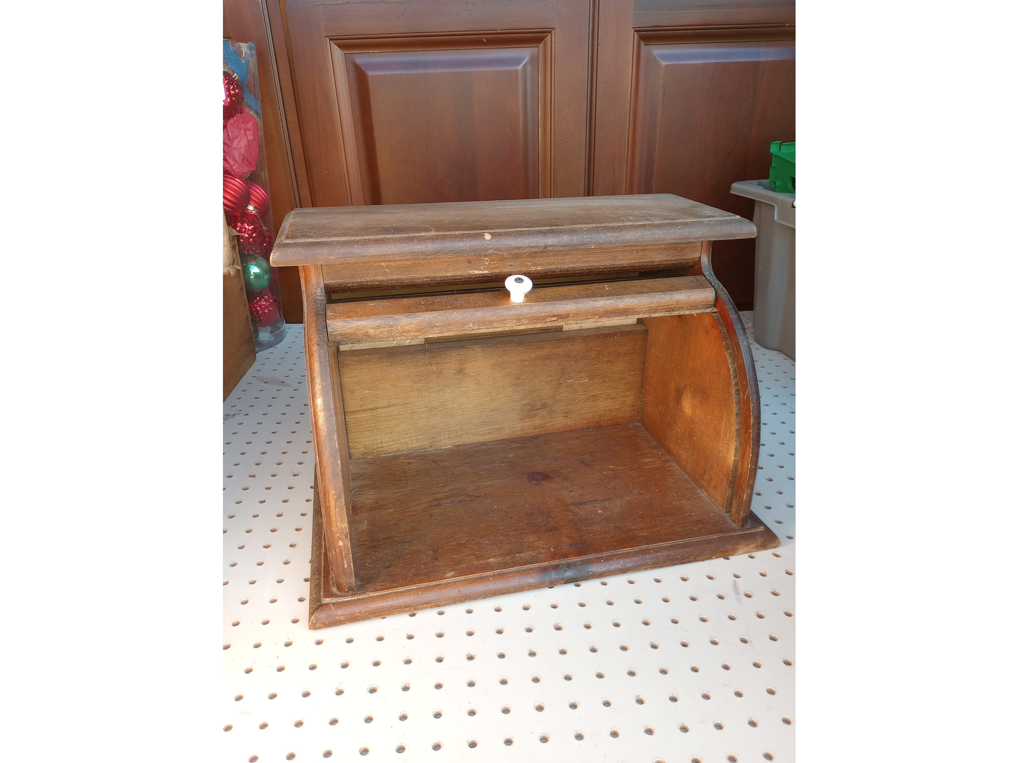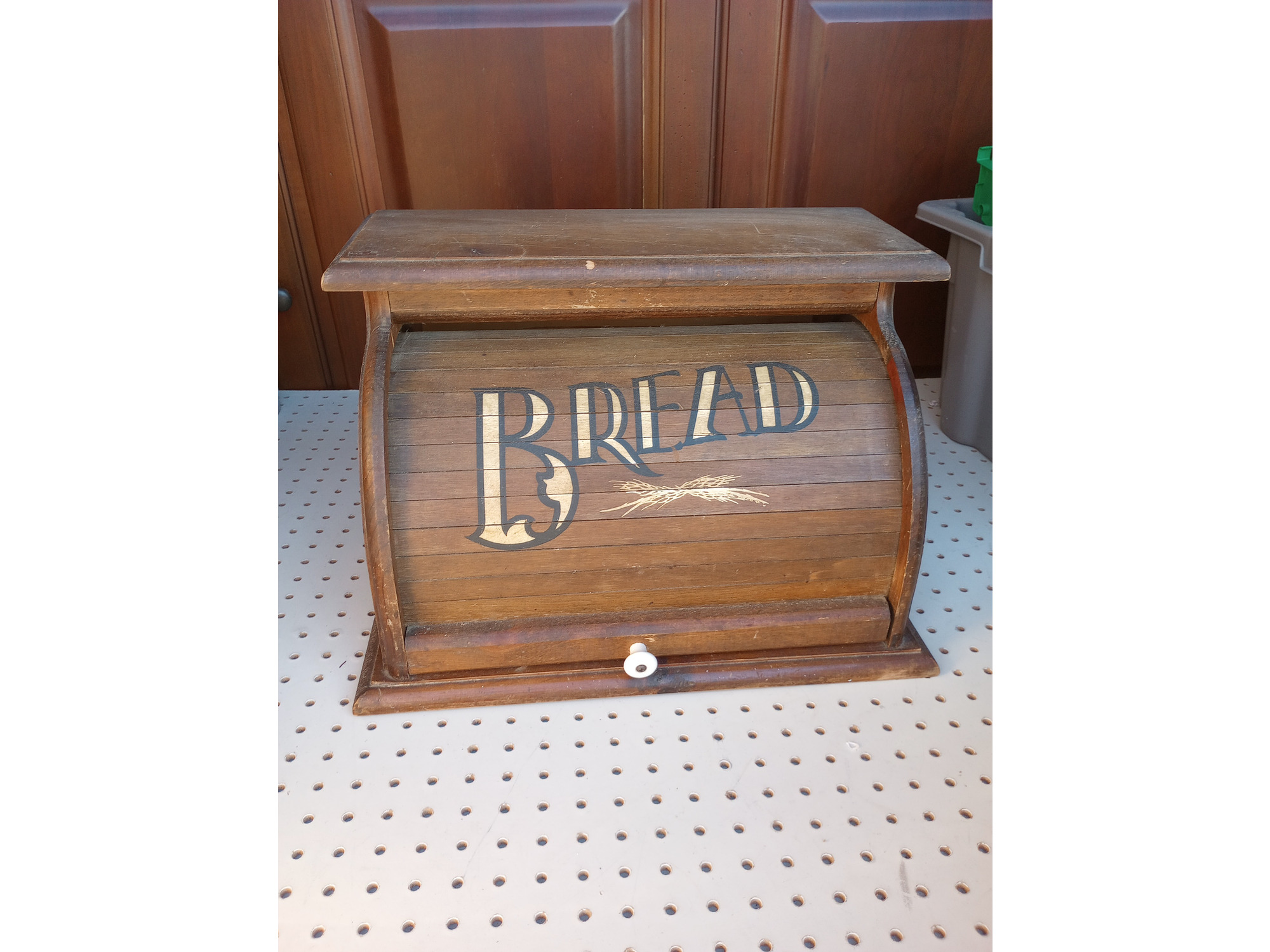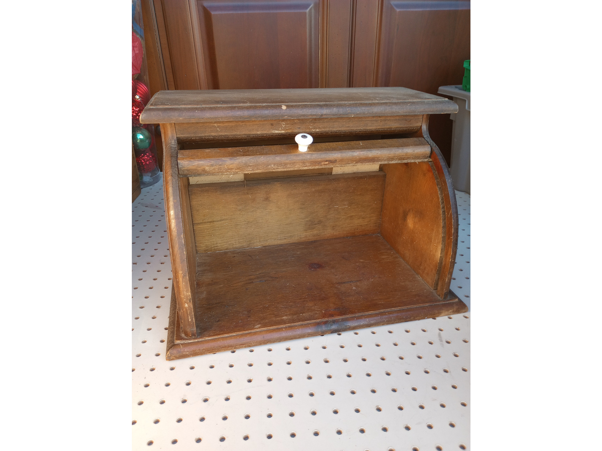Vintage Country Wood Roll Top Door Bread Storage Box Rustic Primitive Farmhouse