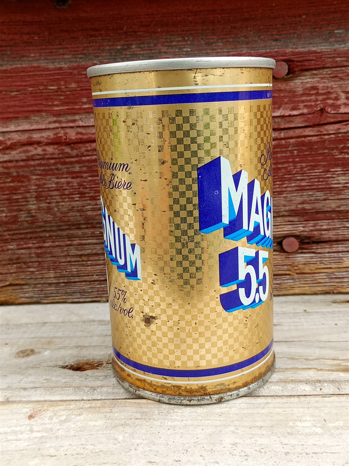 Vintage Magnum 5.5 Beer Can Push Top Variant Wide Seam French / English 341ml