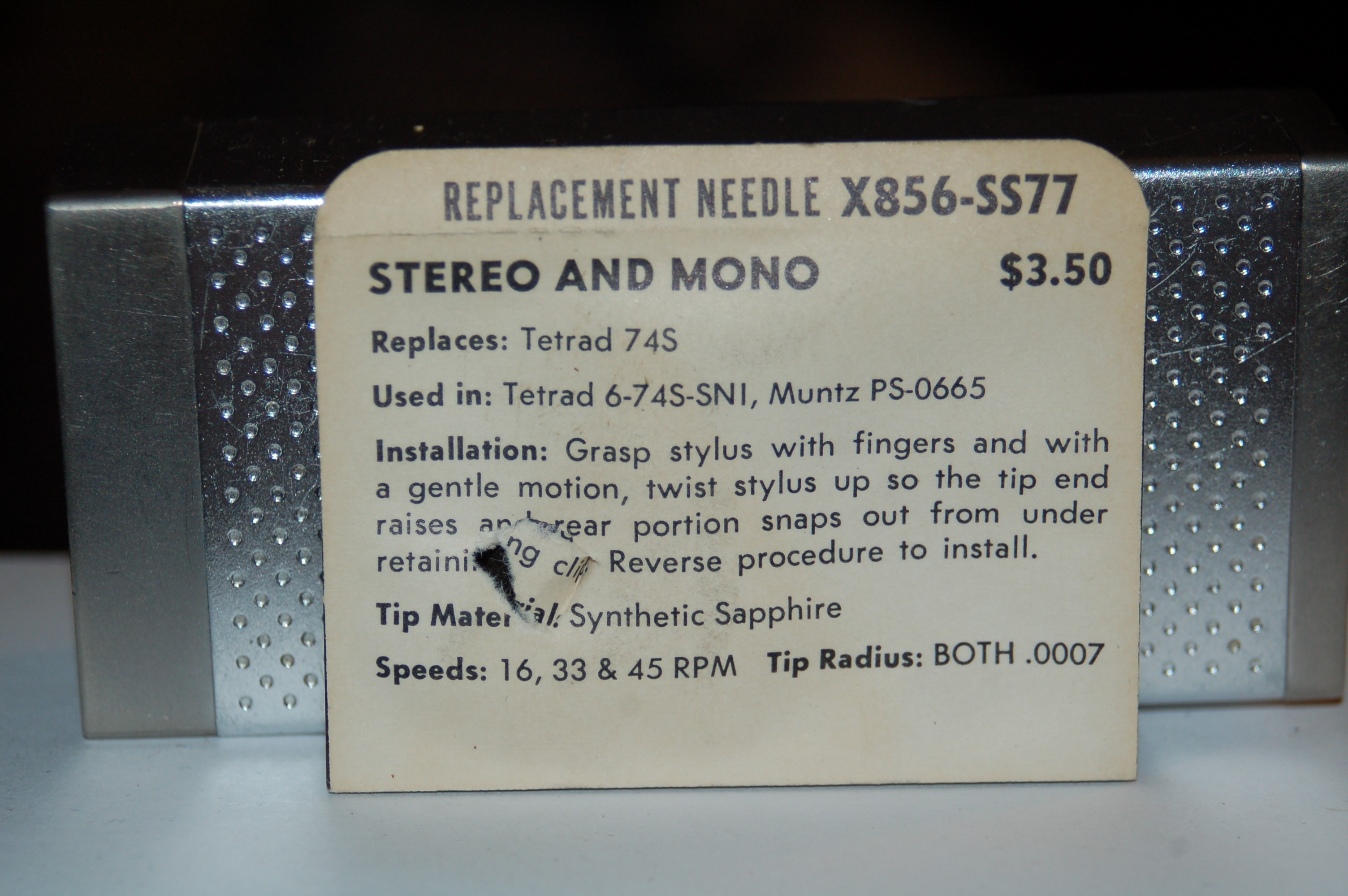 X856-SS77 Pfanstiehl Diamond Needles Stylus Cartridge #594 Original Package